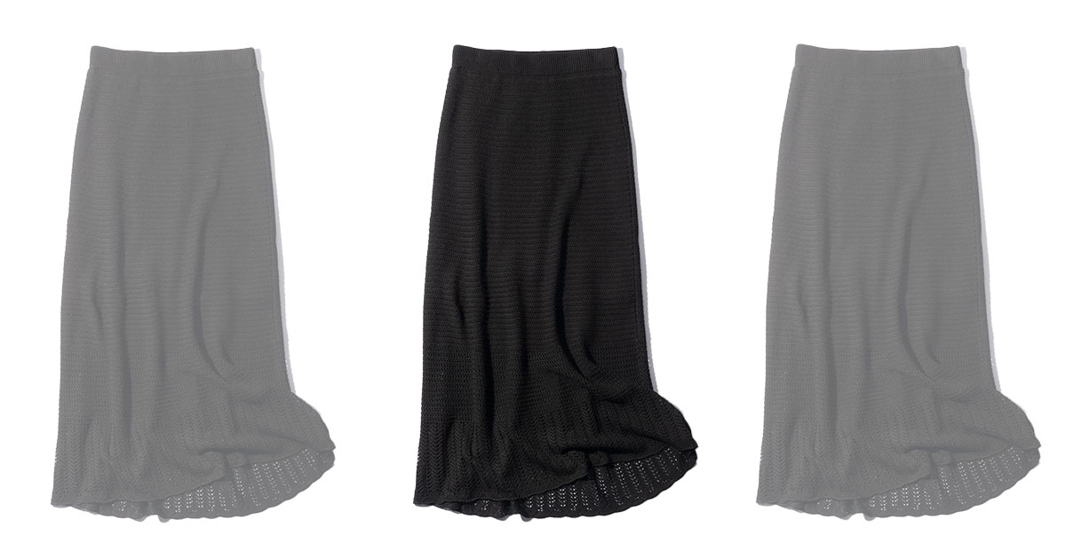 休日カジュアルにはもちろん、通勤でも活躍する1枚。黒をセレクトすることできちんと感のある着こなしが叶います。ニットスカート¥2,990(GU)