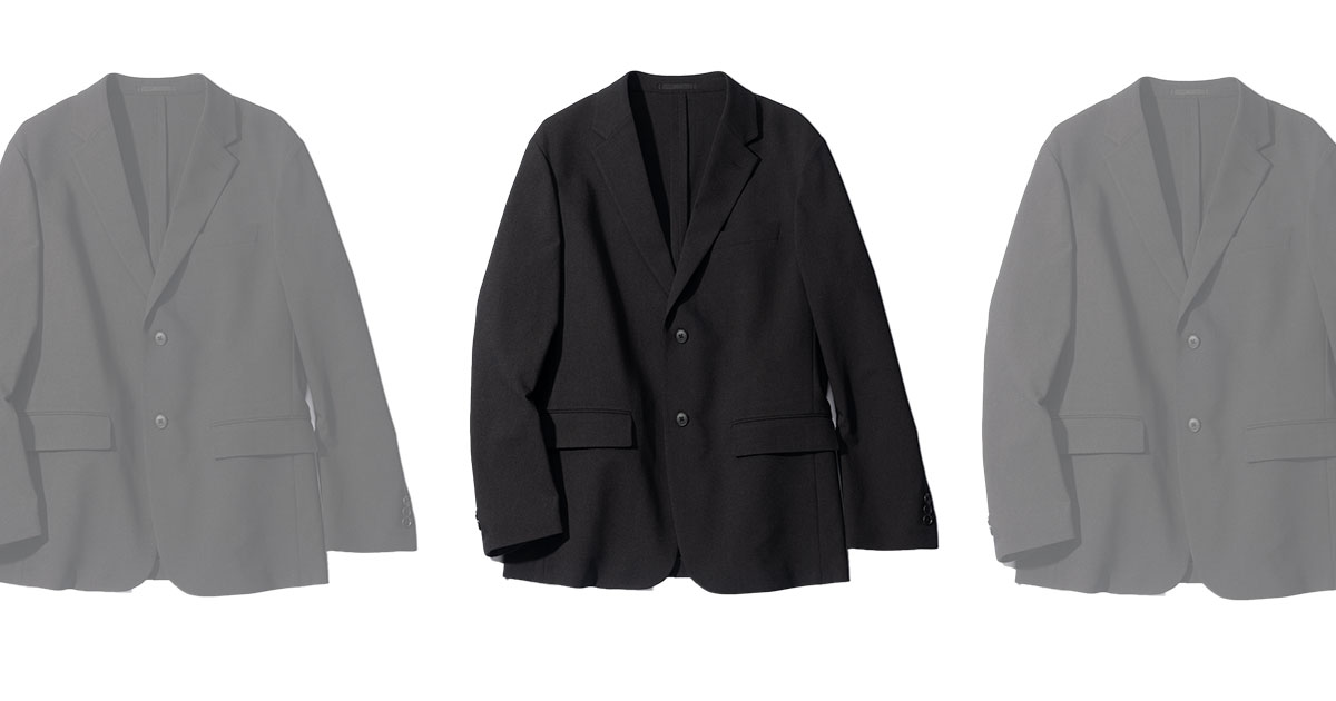 “感動ジャケット”はメンズのラインから。レデイースよりも身幅が広く、さりげなく旬っぽさを宿します。メンズジャケット¥6,990(UNIQLO)