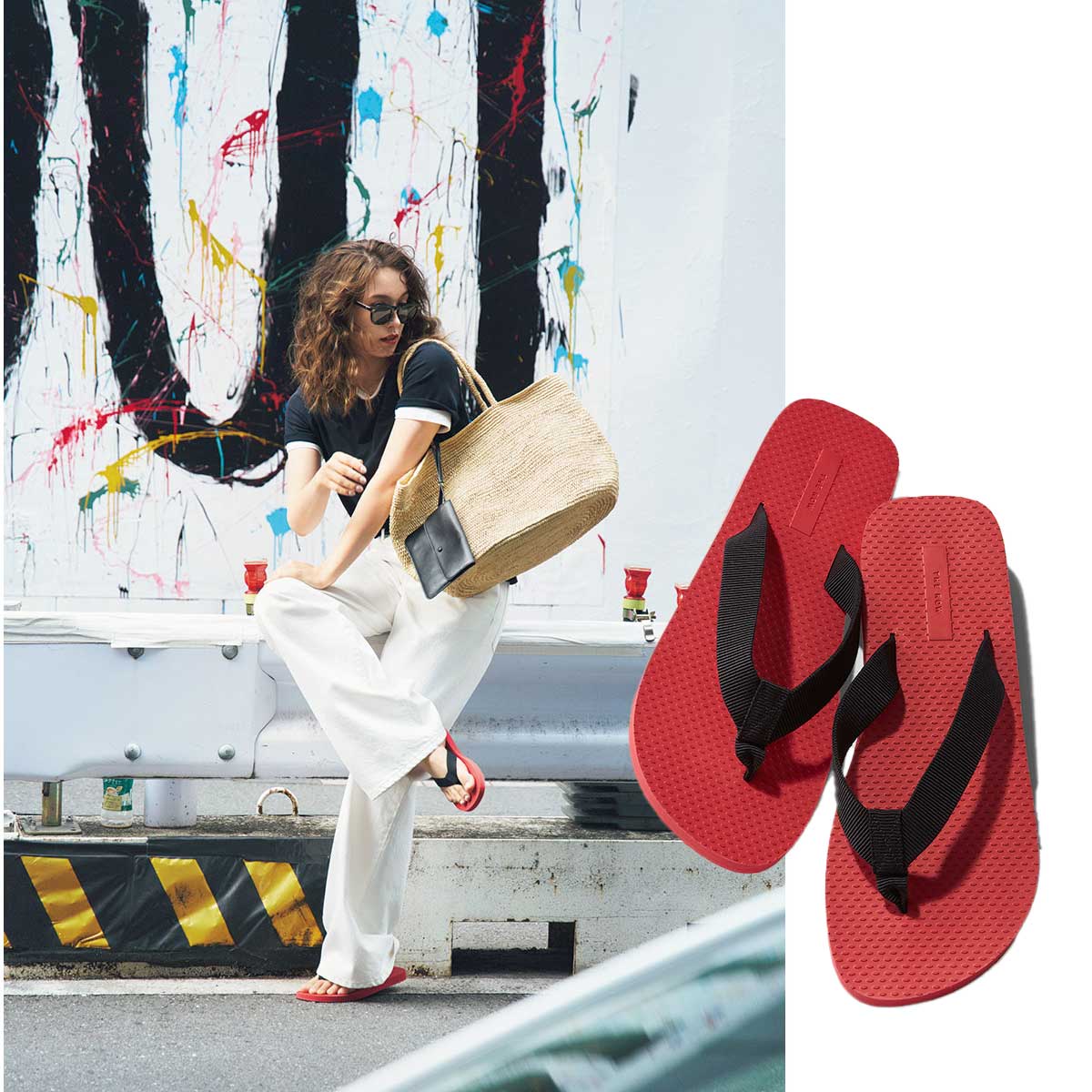 Tシャツ、デニム、ビーサン。永遠の夏のベーシックだからこそ、“今”を反映した選びや着こなしが不可欠。今季THE ROWから登場したのは、スカーレットカラーのソールがアイコニックな一足。遠目からでも映える赤のアクセントで、シンプルな装いも新印象。なめらかな風合いのTシャツは、色違いをレイヤードして奥行きをメイク。程よく厚みのある真っ赤なソールがモノトーンのスパイスになると、早い人から手に入れている“Itサンダル”。サンダル¥125,400(ザ・ロウ/ザ・ロウ・ジャパン)Tシャツ各¥66,000パンツ¥165,000ベルト¥100,100バッグ¥185,900サングラス¥64,900(すべてザ・ロウ/ザ・ロウ・ジャパン)