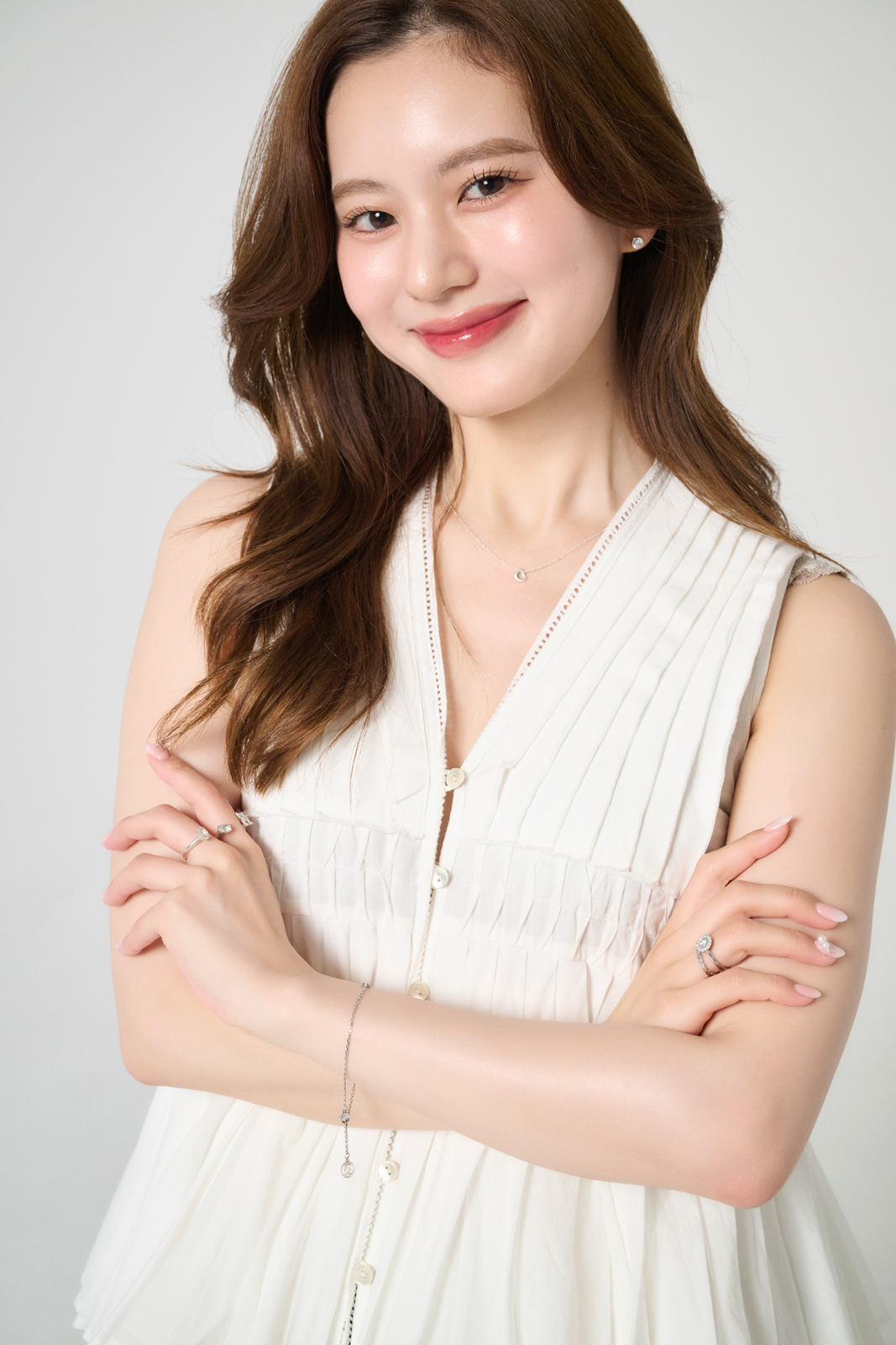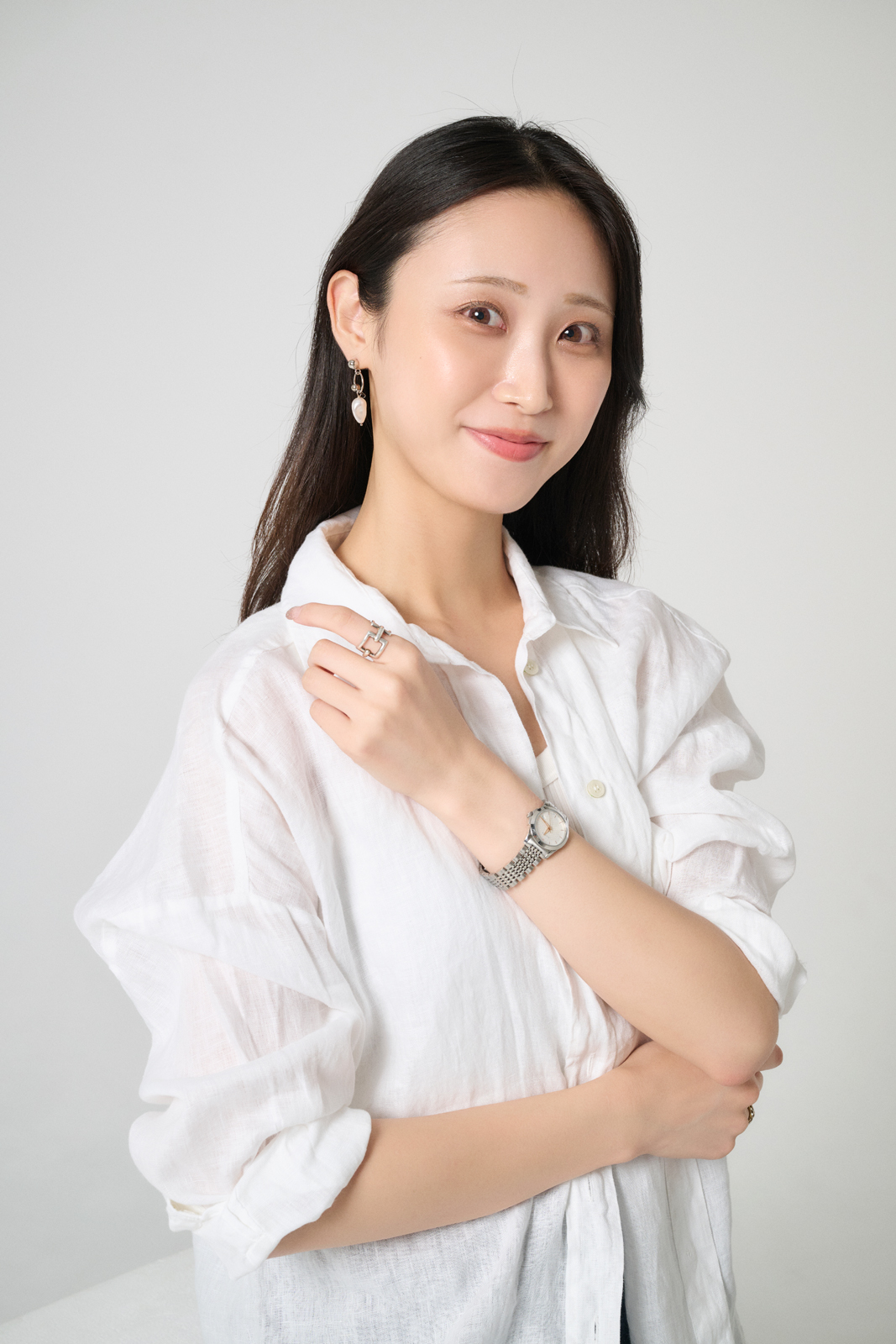 「肌を出す時期は涼しげに見えるようにダイヤやクリスタルなど透明感のあるジュエリーを身に着けることが多いです。お気に入りのピアスはボヌールの0.5カラットのラボグロウンダイヤ。覆輪留めのピアスを探していてようやく見つけたもので、普段使いしやすいのも魅力です。右手のリングは誕生日に、左手のリングはホワイトデーのお返しにプレゼントでいただきました。それぞれにストーリーがあるので身に着けるたびに気持ちがあがります」