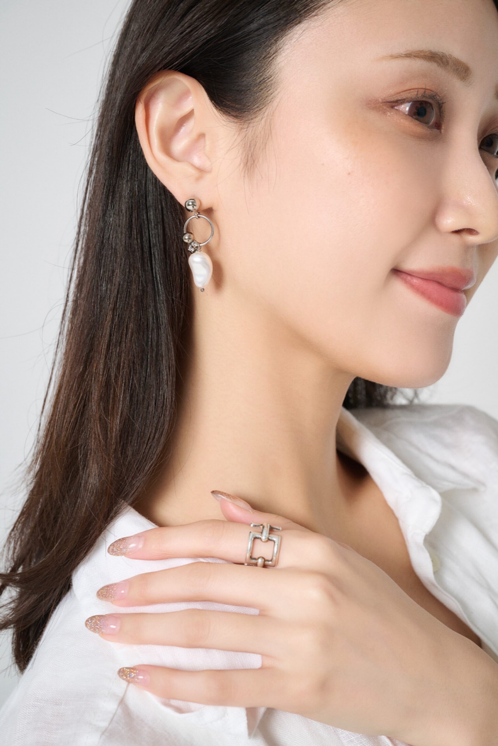 「日差しの強い時期は日焼け止めを塗るので、錆びにくいジュエリーを選ぶようにしています。ロサンゼルス旅行中に買ったジュスティーヌクランケのピアスは、遊び心があるパールのデザインがお気に入り。シルバーってメンズ感があったり主張が強いイメージがあったのですが、抜け感があるものを選べば、服とのバランスも取りやすくてお気に入りです」