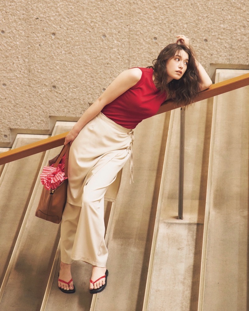8月6日(水)、都会でビーサンを履くなら、配色と小物で“きちんと感”をプラスするのが正解。赤のビーサンがトップスやバッグのシャツとリンクして、カラーにまとまりを。カジュアルな足元も、大きめのレザーバッグが全体に落ち着きを添え、大人の洗練を保ちます。抜け感と遊び心を兼ね備えた、夏の都会派リラックスコーデ。