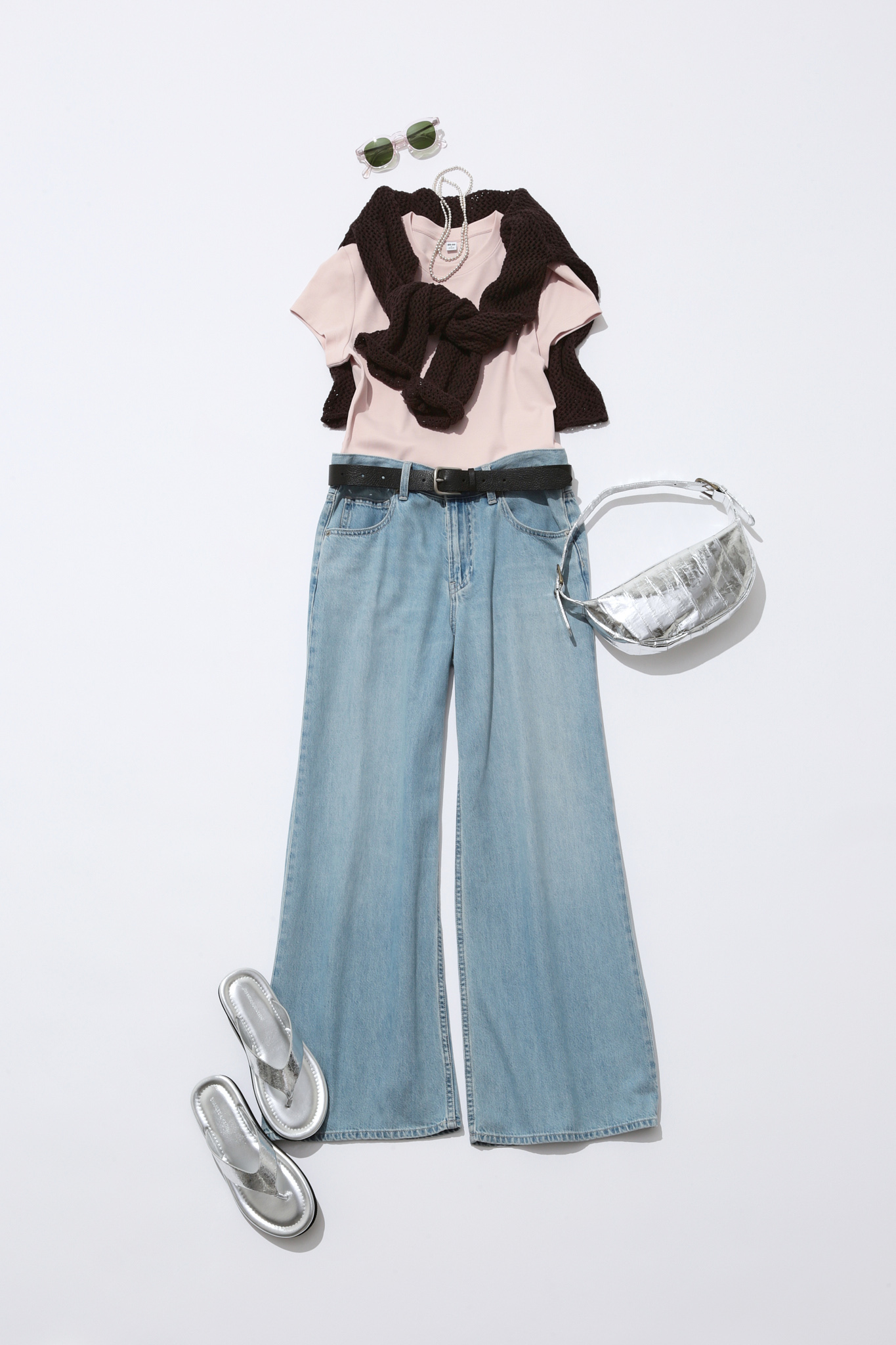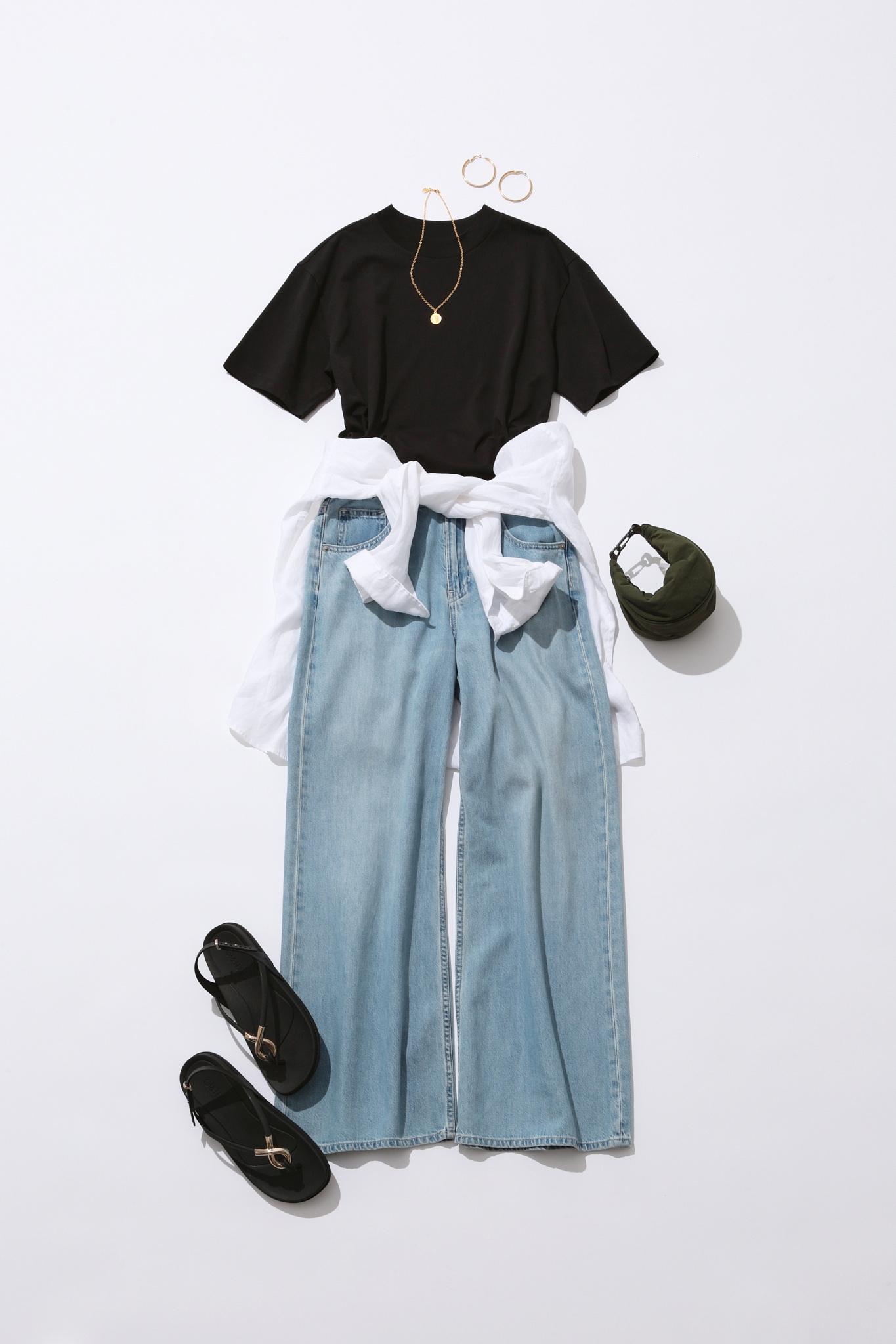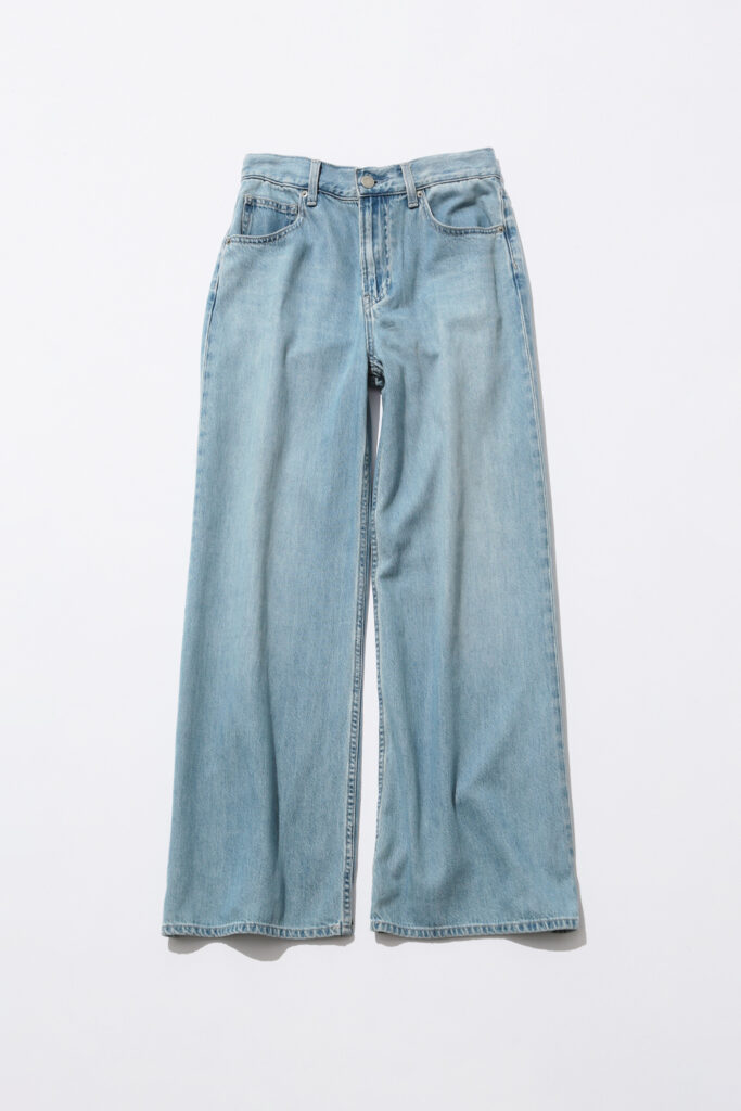 スタイルアップ効果があって夏でも軽やかに穿けるジーンズを「ユニクロ」で発見!そんな「ドレープワイドフレアジーンズ」の魅力と旬のコーデをご紹介します。