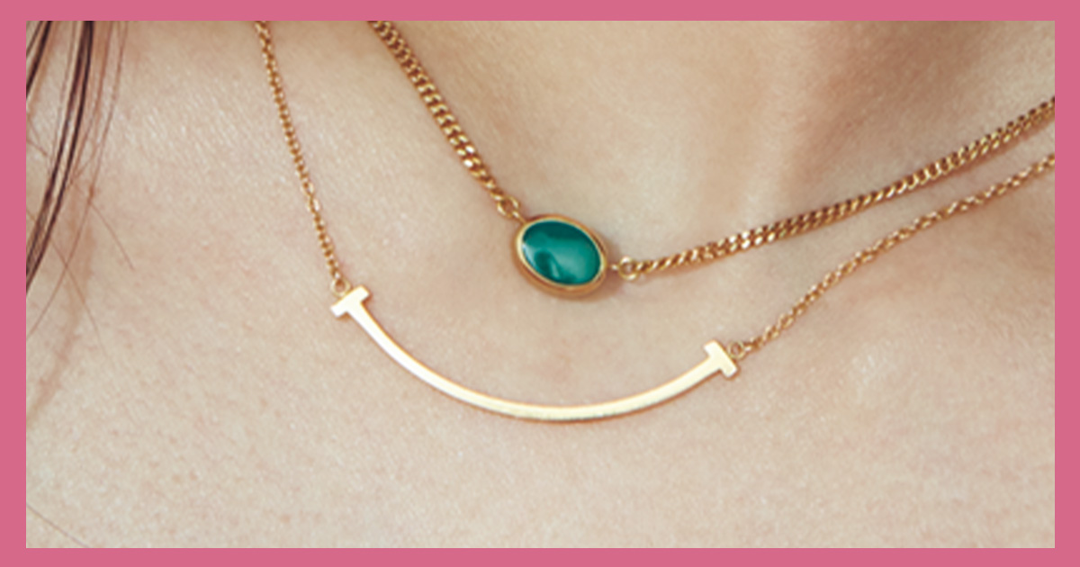 「19歳の時に祖母から受け継いだネックレスはお気に入りのTスマイルと重ねづけをして」