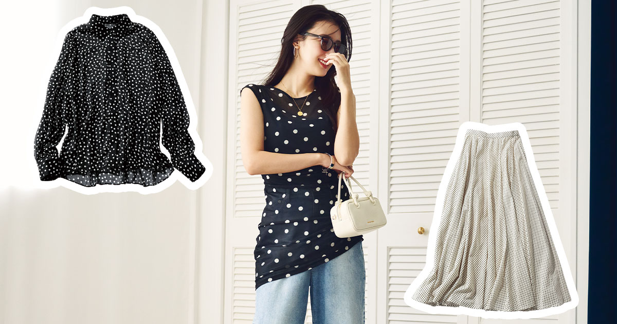 直球で無難になりがちな甘アイテムを、甘すぎずヘルシーに更新するスタイリストたなべさん流の着こなしをご紹介します!流行の「ドット柄」をオシャレに着こなす2つのルールとは?
