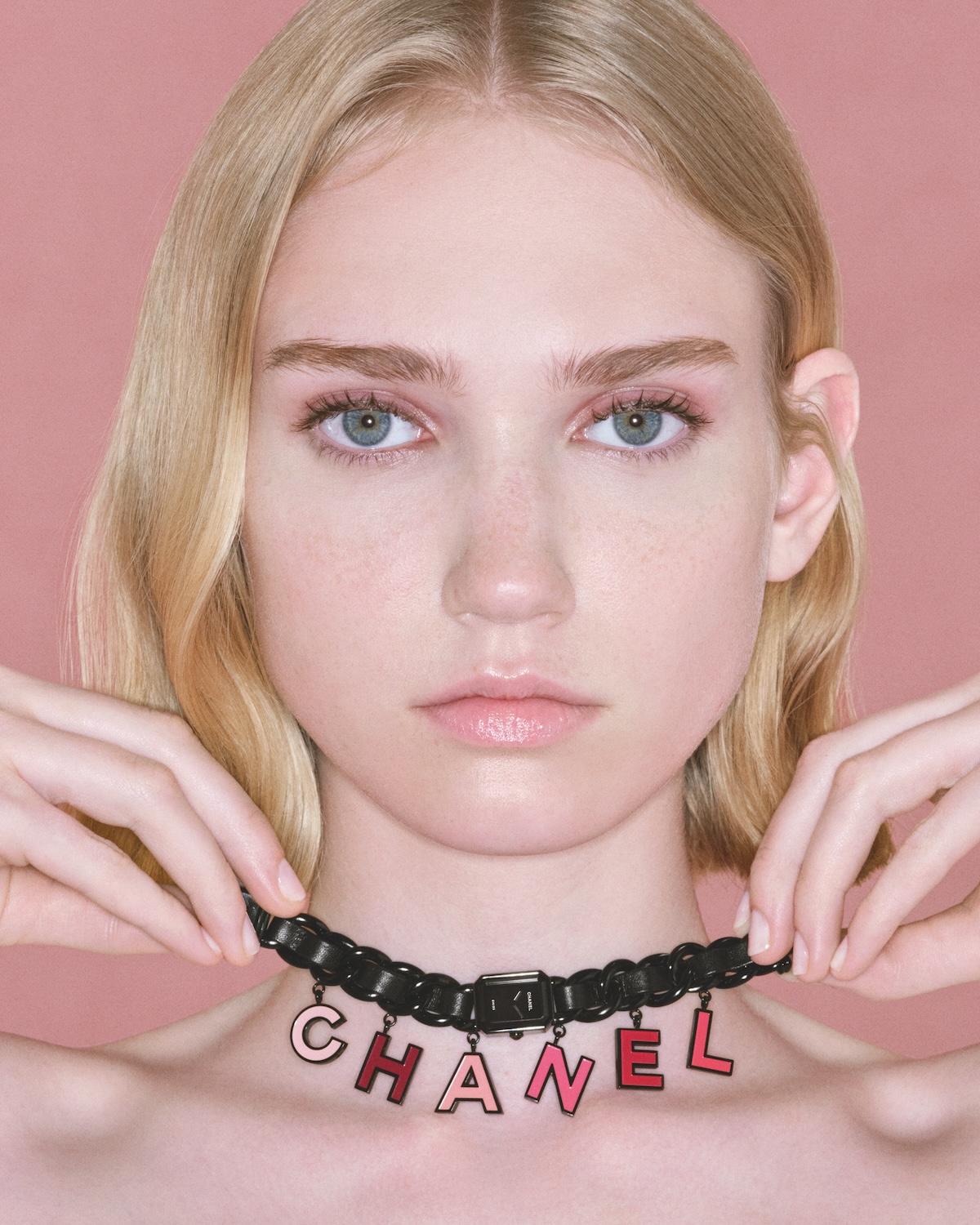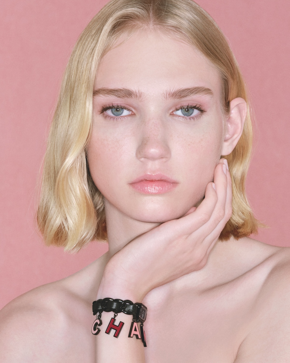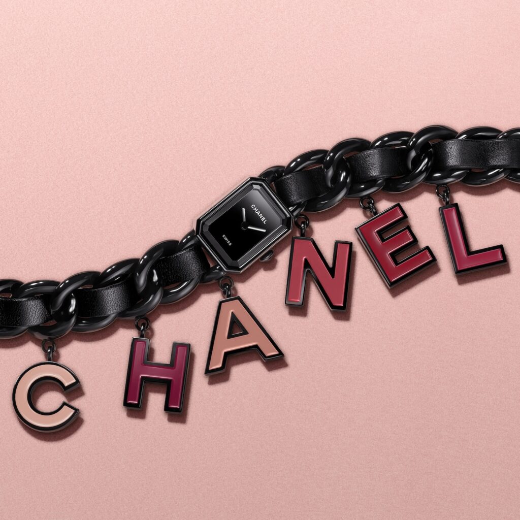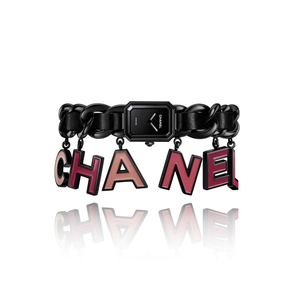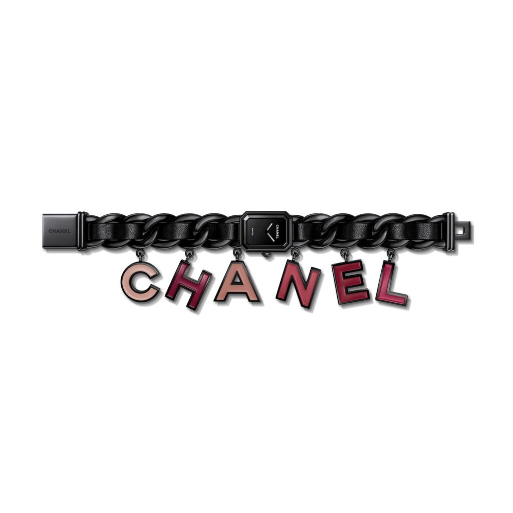 ブラックレザーを編み込んだチェーンブレスレットのプルミエールに、大胆なグラフィックの魅力が加わった「プルミエール チャーム BLUSH」。ピンクのグラデーションカラーでCHANELの文字を象った6つのアルファベットチャームがアクセントを添えます。手作業でラッカー加工を施したチャームのシェードは、メゾンのネイルポリッシュを想起させます。