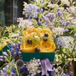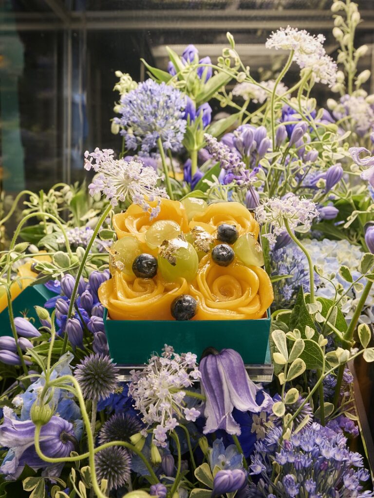 注目は、ティファニーの伝統と庄司シェフの技が融合した、華やかで独創的なアフタヌーンティー。1段目は、シェフのシグネチャーであるフルーツタルト。8月は桃のタルトにイチゴのソルベが添えられます。2段目のデザートには、ティファニー ブルーを彷彿とさせるマカロンや、シェフのスペシャルメニューであるバニラチーズケーキ、フィナンシェ、プラリネのチョコレートガナッシュが彩ります。3段目のセイボリーは、ジュエリーの精緻さに着想を得た胡瓜のサンドウィッチ、マッシュルームサンドとクラブサンドが並び、それぞれの食材が見事に調和しています。カプレーゼ、桜鱒とアボカドの塩タルト、花をイメージしたモルタデッラと卵のオープンサンド、ほおずきのピクルス、2種のスコーンも見逃せません。