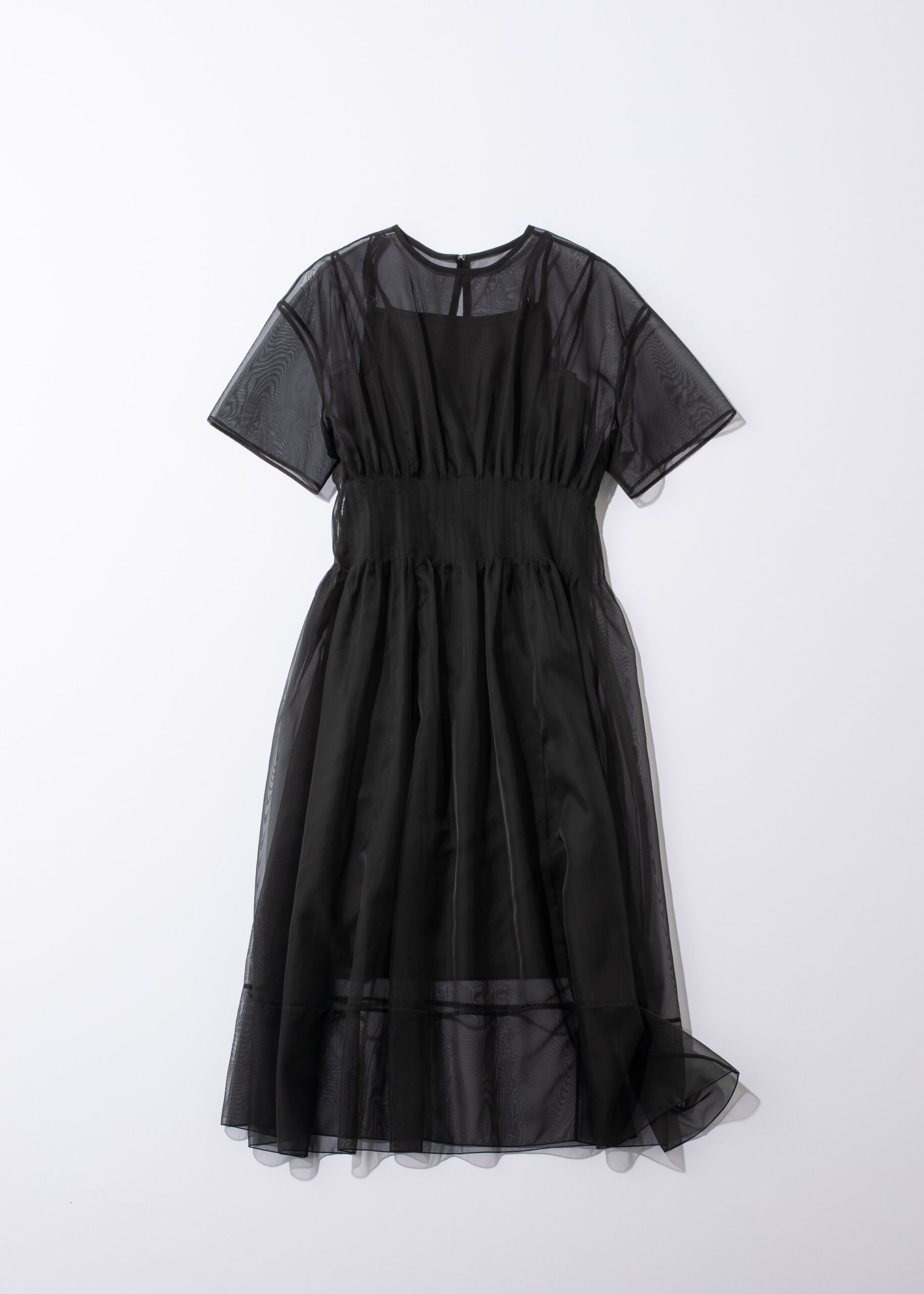 ウエストに施されたコルセットのようなディテールですっきりとしたシルエットに。柔らかな透け感と華奢なリボンでほんのり甘さのあるデザインとなっています。デイリーやパーティーで使えるのはもちろん、1枚でもレイヤードでも楽しめる優秀な1着。ワンピース※インナーキャミワンピース付き¥28,600(ルシェルブルー/ルシェルブルー総合カスタマーサービス)