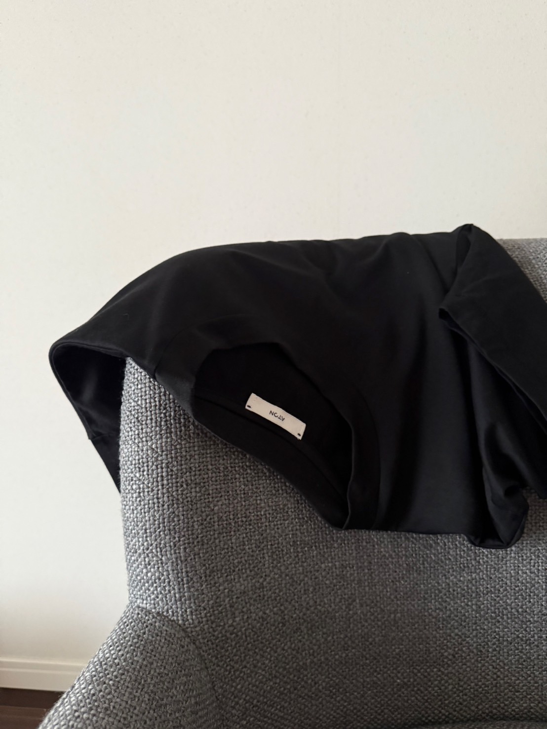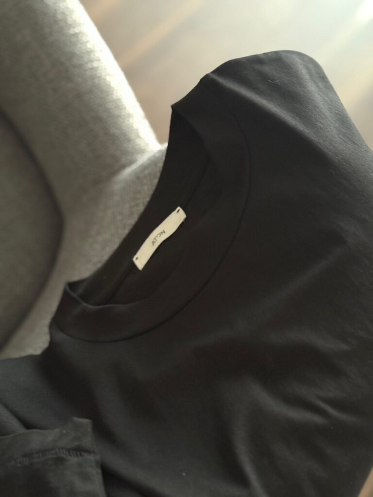Tシャツに15,400円…正直、高いですよね。私もそう思います。でもそんな感情を上回るくらいの実力がこの子にはあるんです。お洗濯しても失われないコットンの光沢や、着続けてもヨレたり伸びたりしないクオリティは、本当にさすが。いつの間にか、この値段に納得している自分がいます。1シーズンで終わり…みたいな買い方をするより、ずっとサステナブル。ワードローブも気持ちも落ち着きます。