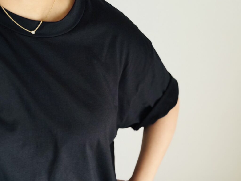 『CLASSY.』でもずっとお世話になっているブランド、「ATON(エイトン)」の「SUVIN 60/2 | OVERSIZED T-SHIRT」。お値段は15,400円です。2~3年ほど前にバーガンディを買い、今年ブラックとキャメルを買い足しました。(ECサイトを見たところ、キャメルは現在販売していないかも?)