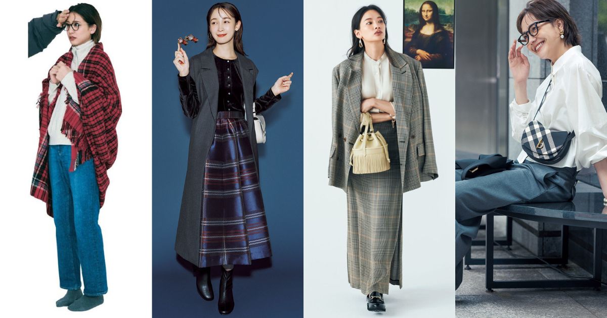 秋の訪れを感じさせる「チェック柄」は、コーデに取り入れるだけで一気に旬顔に。カジュアルからキレイめまで幅広く使えるのも魅力です。今回は上品な空気をまとった、大人の着こなし見本をお届けします。