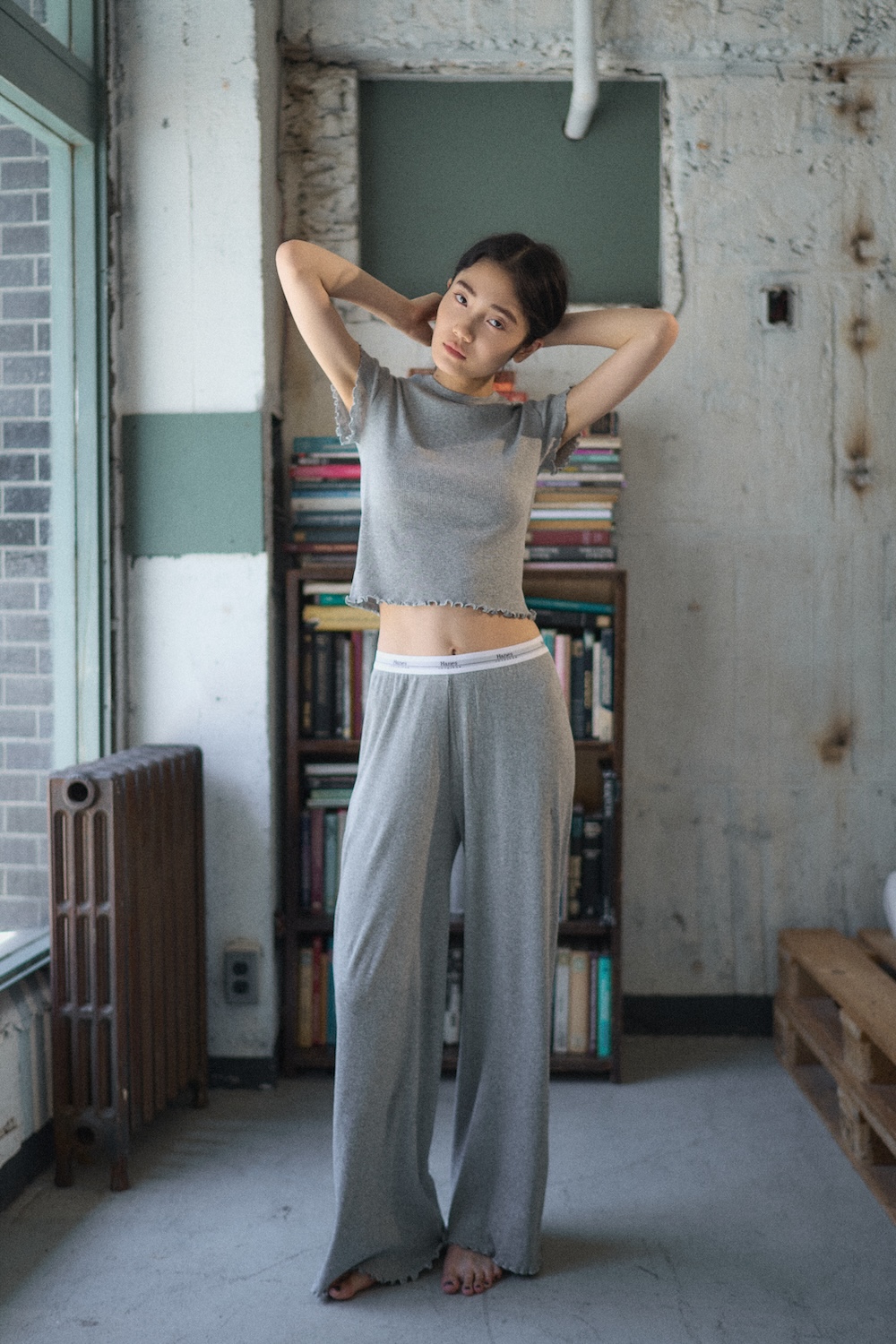 凸凹のあるテレコ素材は肌離れと伸縮性が良く、心地良いフィット感。裾のメロー仕上げは軽やかな印象で、ワイドなシルエットによるリラックス感のあるはき心地です。Hanes®(ヘインズ)のシグネチャーゴムデザインに「DODO JEAN」のロゴをプラスしたウエストゴムのダブルネームがデザインアクセント。サイドに縫い目がない丸胴生地を使用しているので、体に触れる当たりが少なく快適な着心地です。同素材のクロップTシャツ(HW1-C101)とセットアップで着用可能。ちょっとした小物を収納できるリユース可能なエコパッケージ。