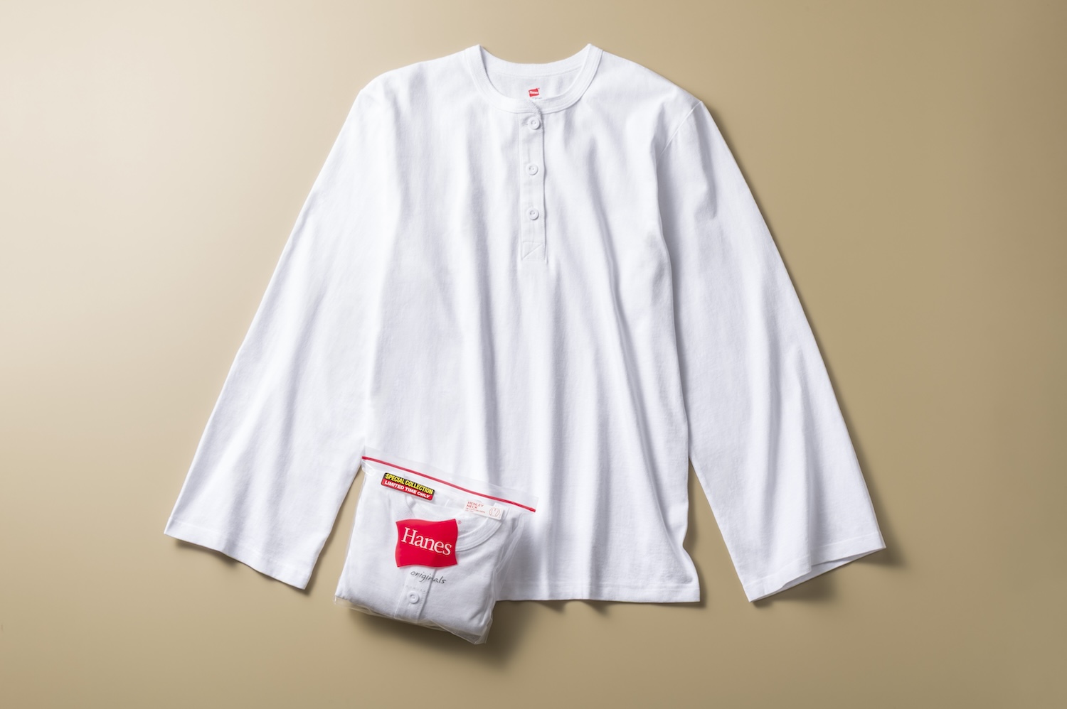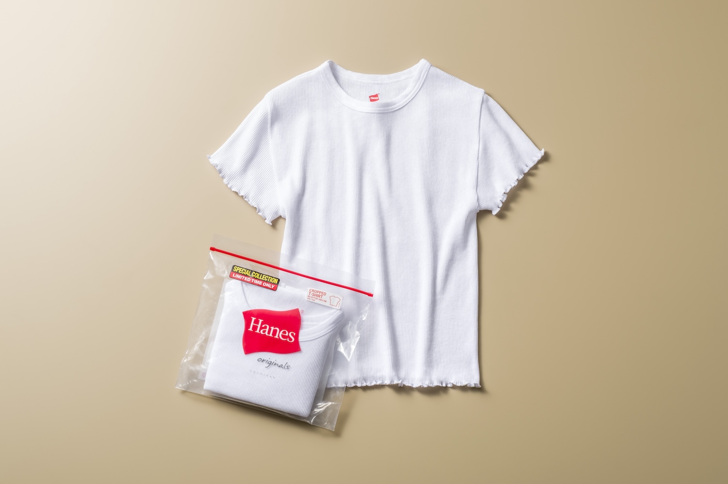 ベーシックアパレルブランドとして長年不動の人気を誇るヘインズ。今回のコラボレーションでは、ロングセラーアイテムを含む7つのラインナップで展開。人気スタイリスト百々千晴さんが、デザイン開発に全面的に参画しています。