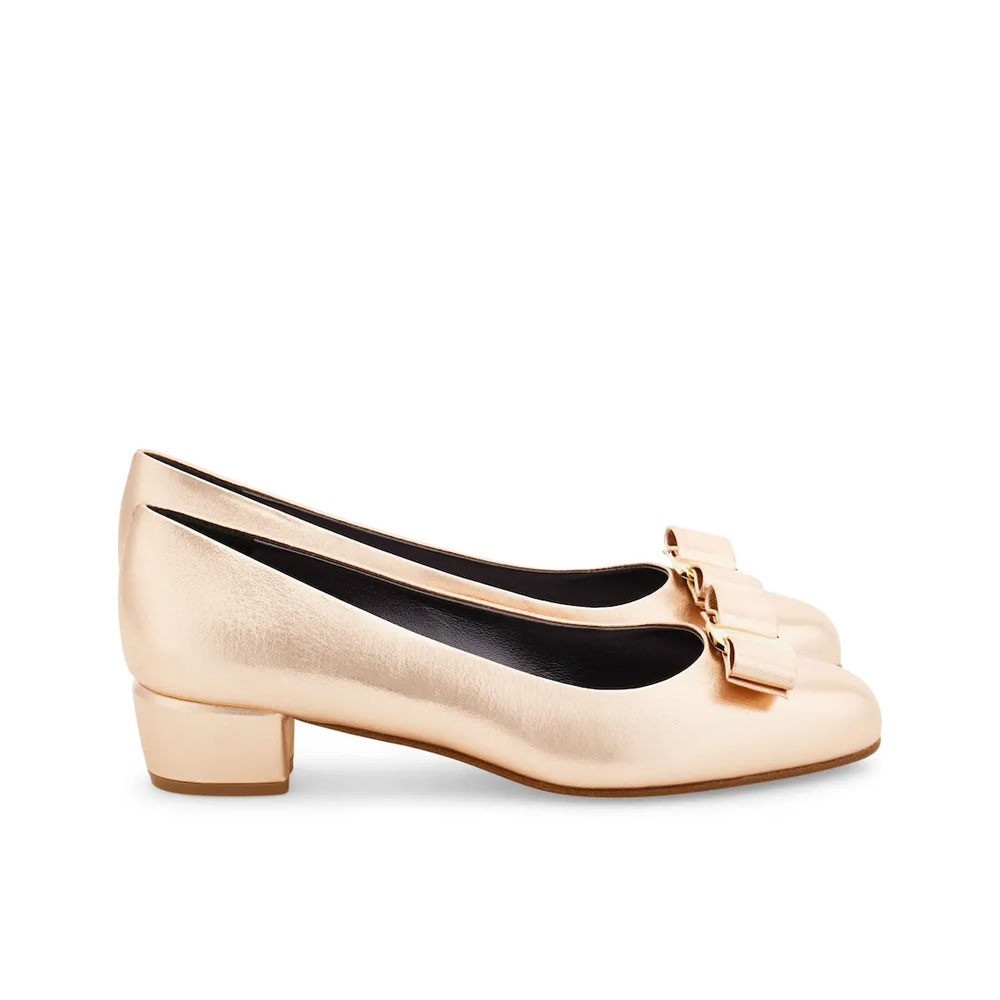 シューズでは、FW25コレクションより、洗練されたモダンなアレンジを加えたラミネート加工の「VARA(ヴァラ)」シリーズが、伊勢丹ポップアップストア先行・MI グループ限定として登場。象徴するリボンモチーフやライニングには、より一層の輝きを放つカラーリングを施し、上品さの中に視線を惹きつける華やかさを演出。クラシックなシルエットに、新たな質感と色彩のアクセントを加えます。