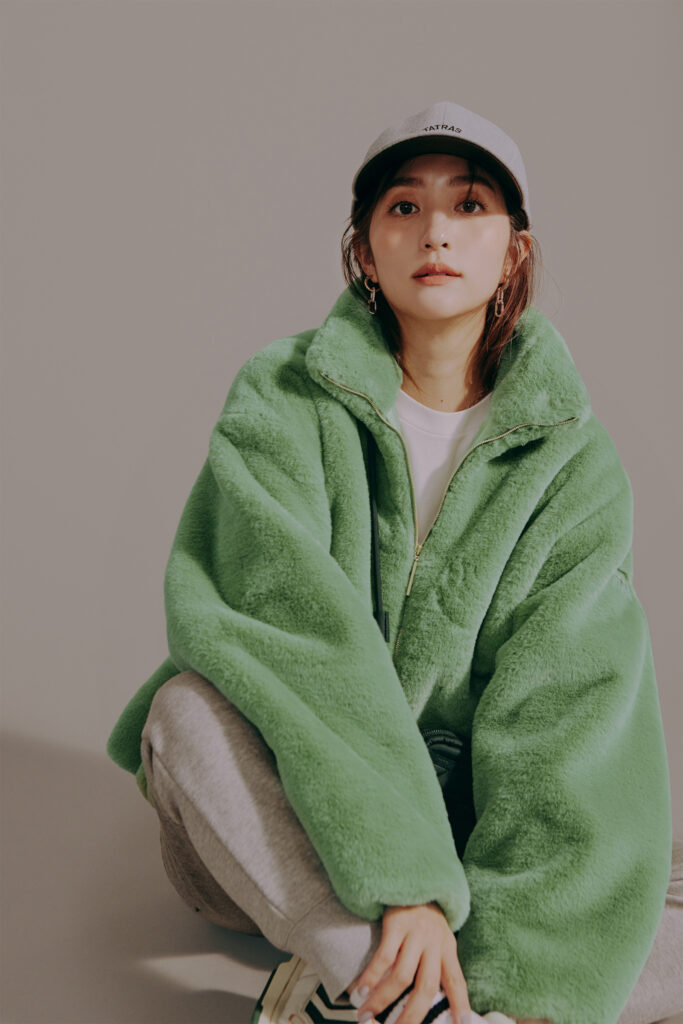 ゆったりとしたドロップショルダーと太めの袖で重ね着もしやすく、真冬まで活躍。起毛素材で仕上げたポケットの内袋は、ハンドウォーマーとしても活躍。きれいめ派のための休日ボアブルゾン。ブルゾン¥71,500Tシャツ¥28,600パンツ¥35,200帽子¥24,200バッグ¥51,700(すべてタトラス/タトラス 銀座店)靴下¥1,430(アスファルト/アースマーケティング)スニーカー¥14,300(ヒュンメル/エスエスケイ お客様相談室)イヤリング¥6,820(イットアトリエ/フォーティーン ショールーム)