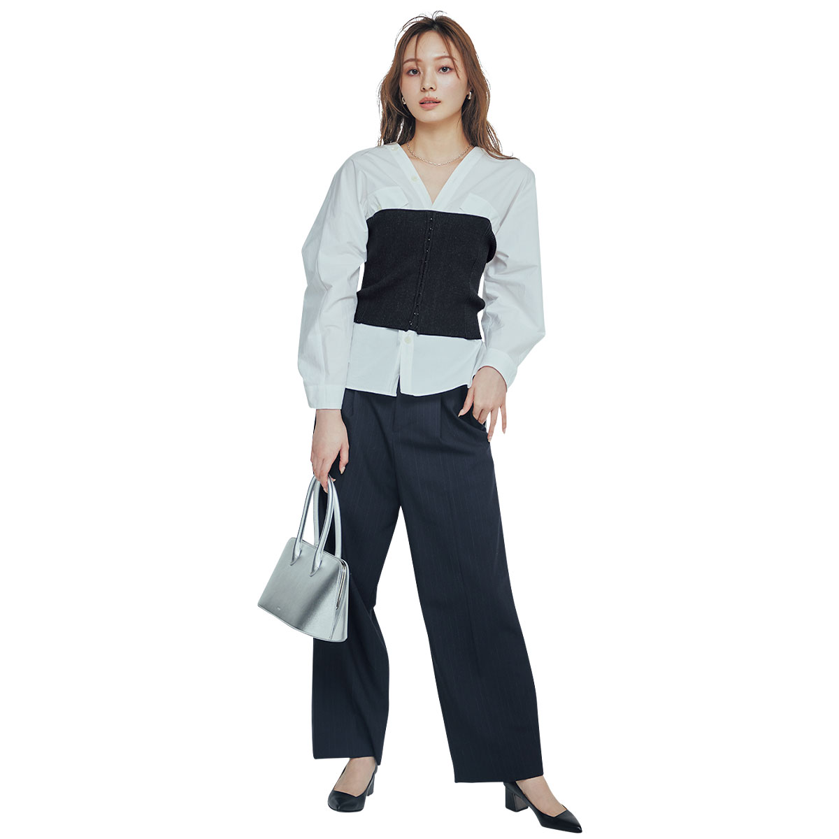 【白シャツ×黒パンのオフィカジを更新するビスチェ】