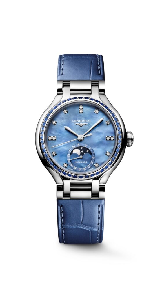 2009年の初代モデルのスピリットに着想を得た新生「ロンジン プリマルナ」コレクションは、34㎜サイズを採用。崇高なサファイアを用いた「プリマルナ ブルーサファイア」モデルに加え、気品ある「プリマルナ ダイアモンド」モデル、そして「プリマルナ」モデルを多彩なラインナップで展開します。