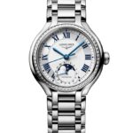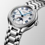 1900年代初頭から続く、卓越したジェムセッティングの技術が息づき、「ロンジン プリマルナ」史上初めて、厳選されたサファイアをベゼルに巧みにあしらったその姿は、まさに月のパワーを宿すお守りのようなジュエリーウォッチ!