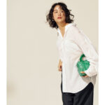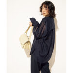 オーバーサイズなら間違いないと考えがちだけど、それこそがこなれない原因かも。体がシャツの中で自然に泳ぐ“程よいゆとり”が今っぽさの正体。2つ外してちょうどいいデコルテの開きになるボタンの位置や指先が少し出るたっぷり長さのある袖、ヒップがギリギリ隠れる裾…無理に衿を抜かなくてもサマになるシャツなら、“シャツアウト”もおのずと素敵に。
