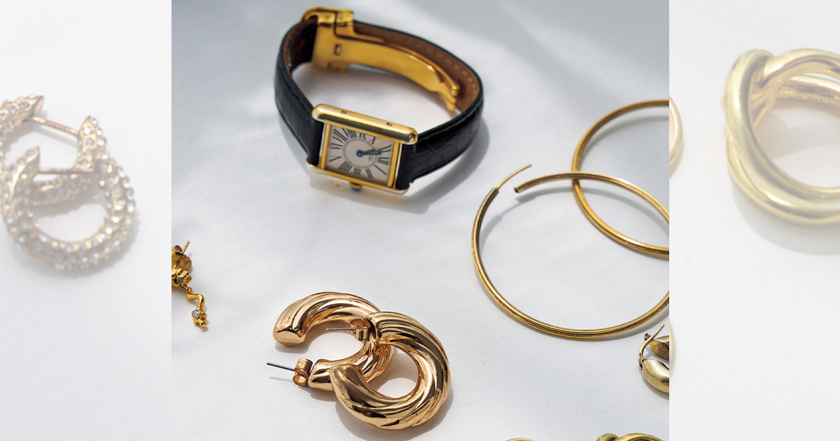 パキッとした白シャツに大ぶりジュエリーを合わせると、日常からかけ離れたエレガントな印象になりがち。だから、華奢なジュエリーを少しだけ盛りつける、それくらいのさりげなさが、色っぽカジュアルなデイリー服にはちょうどいい気がしています。ただ、引き算しすぎるとコンサバ寄りになってしまったり、少し物足りなく感じてしまうことも…。そんな時、バランスを整えてくれる存在が、今年仲間入りしたヴィンテージのカルティエのタンク。クロコ型押しの黒レザーベルトをピリッと効かせるだけで、全体のジュエリーバランスが引き締まり、小ぶりなジュエリーの繊細さも一層引き立つんです。