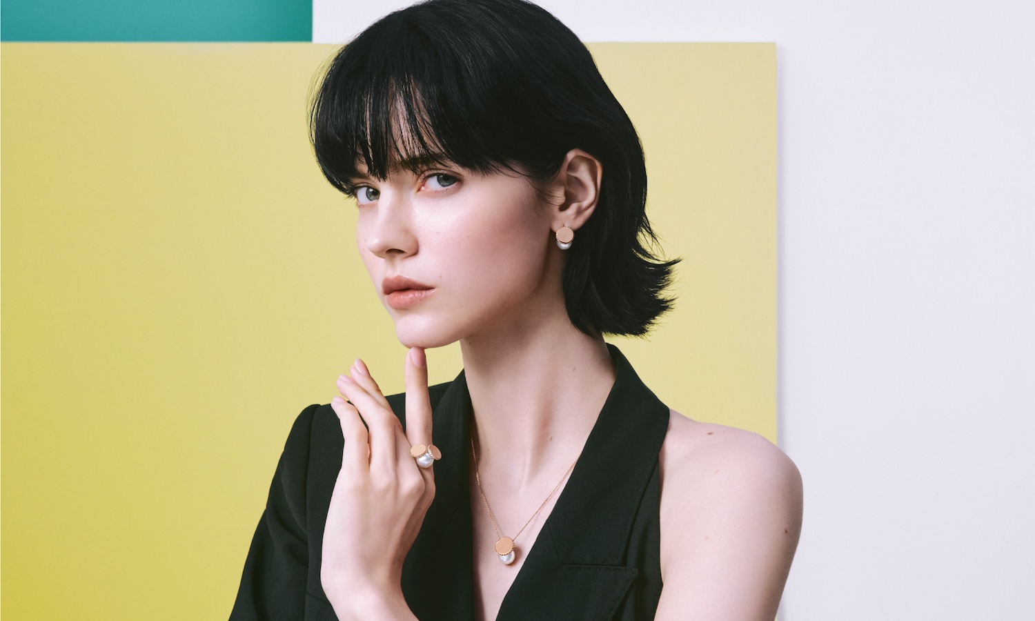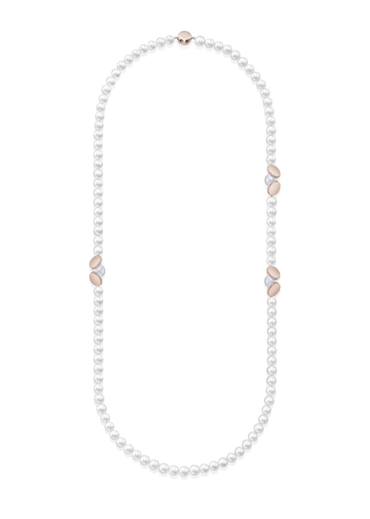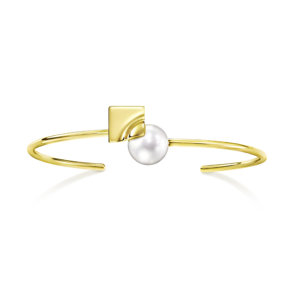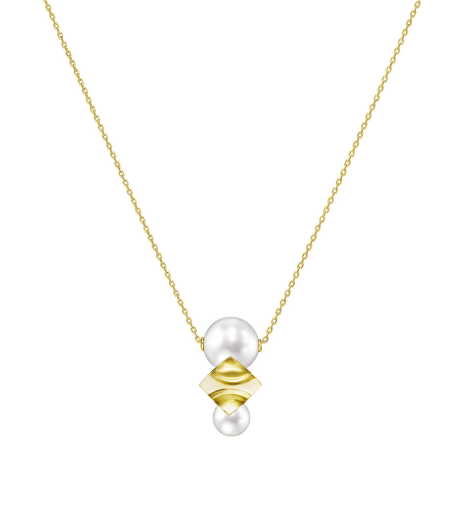 そして「エム/ジー タサキ」からは、サイズの異なるパールと葉のようにしなやかさのあるゴールドを幾何学的に組み合わせ、エッジさと柔らかな曲線をリズミカルに表現した「SQUARE LEAF(スクエアリーフ)」シリーズと、浮遊感のあるディスクとパールのシルエットがユニークな、遊び心たっぷりの「DISC PEARL(ディスクパール)」シリーズが登場します。
