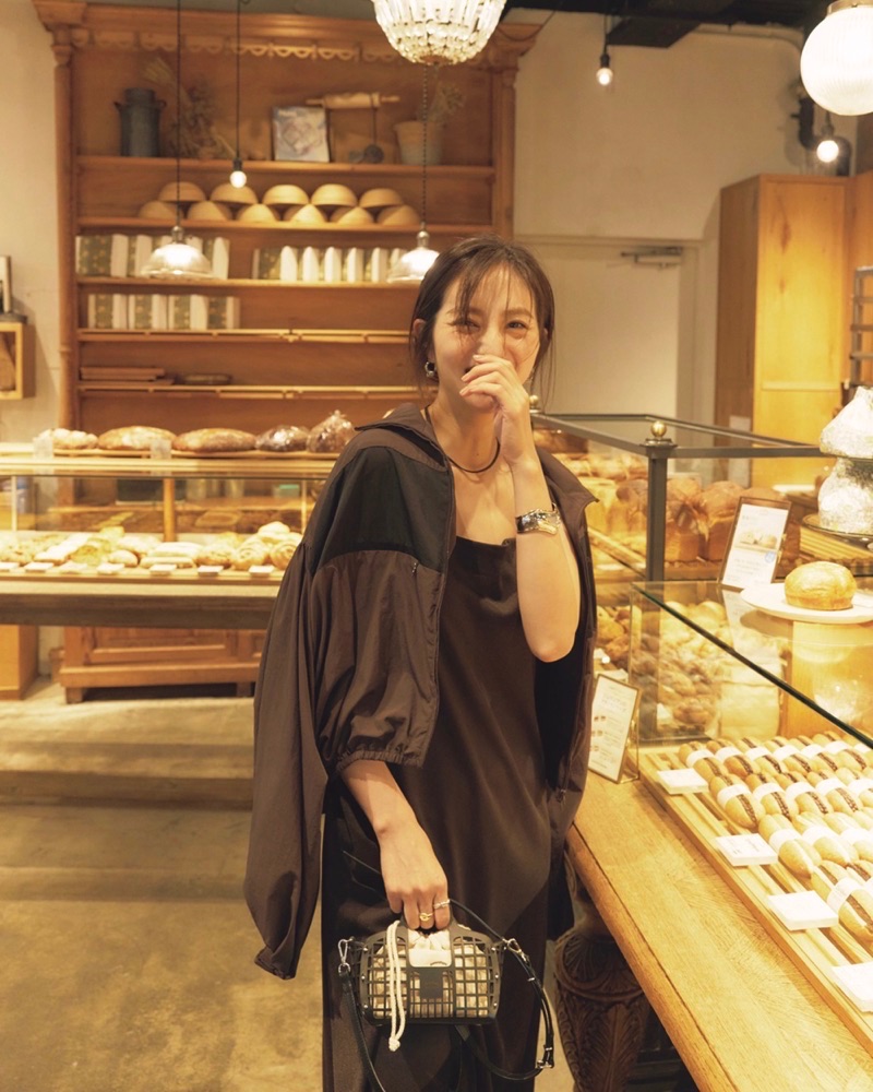 ワンピース¥39,600(ナイスナイス モーメント/ショールーム リンクス)ブルゾン¥19,800(エミ/エミ ニュウマン新宿店)バッグ¥148,500(ドメスティック/アッシュ・ペー・フランス)ピアス¥19,800(ローラロンバルディ/八木通商)バングル¥29,700(JAMIRAY/エルディスト ショールーム)リング[人差し指]¥10,450(ココシュニック オンキッチュ)[中指]¥17,600(アルティーダ ウード)