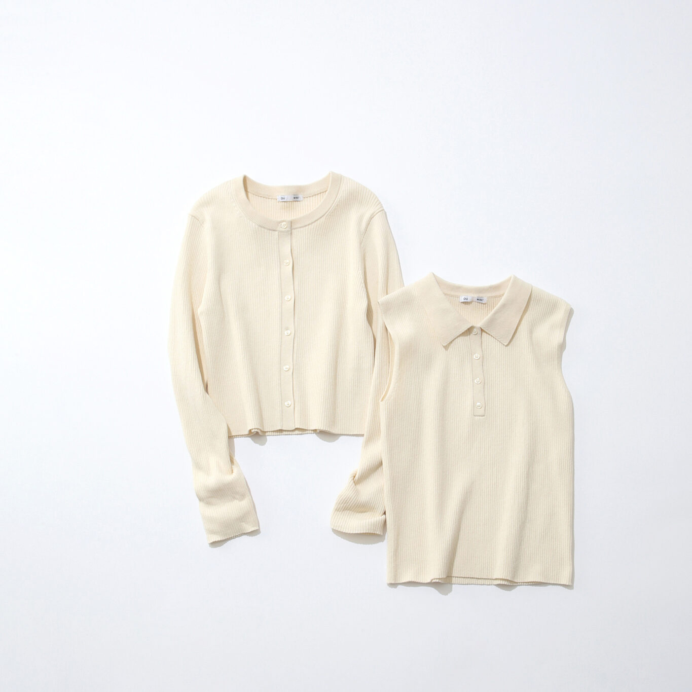 セット売りなのに驚きの3,990円というお手頃価格!ニットは衿付きなので単体で着ると存在感があって可愛らしい。カーディガンの下から衿が見えるように着用するのもおすすめです。ポロニットアンサンブル¥3,990(GU)