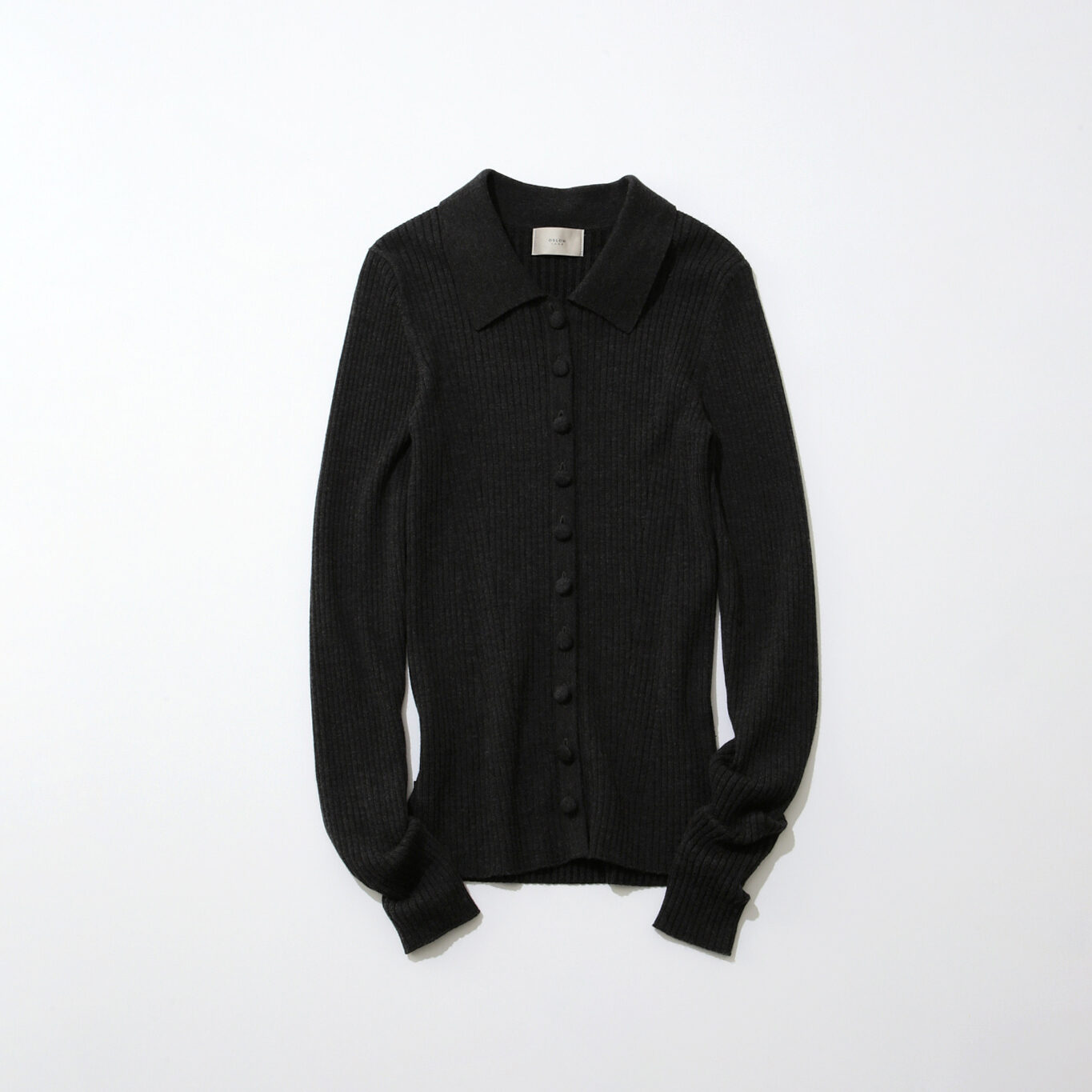 リブ編みなので縦ラインでシルエットがすっきりと見え、細見え効果も。程よく身体にフィットするため女性らしい美しい印象を与えてくれます。衿付きなのでカジュアルになりすぎず、キレイめコーデも楽しめる上品な1着。リブポロニットカーディガン¥71,500(オスロー/フィルム)