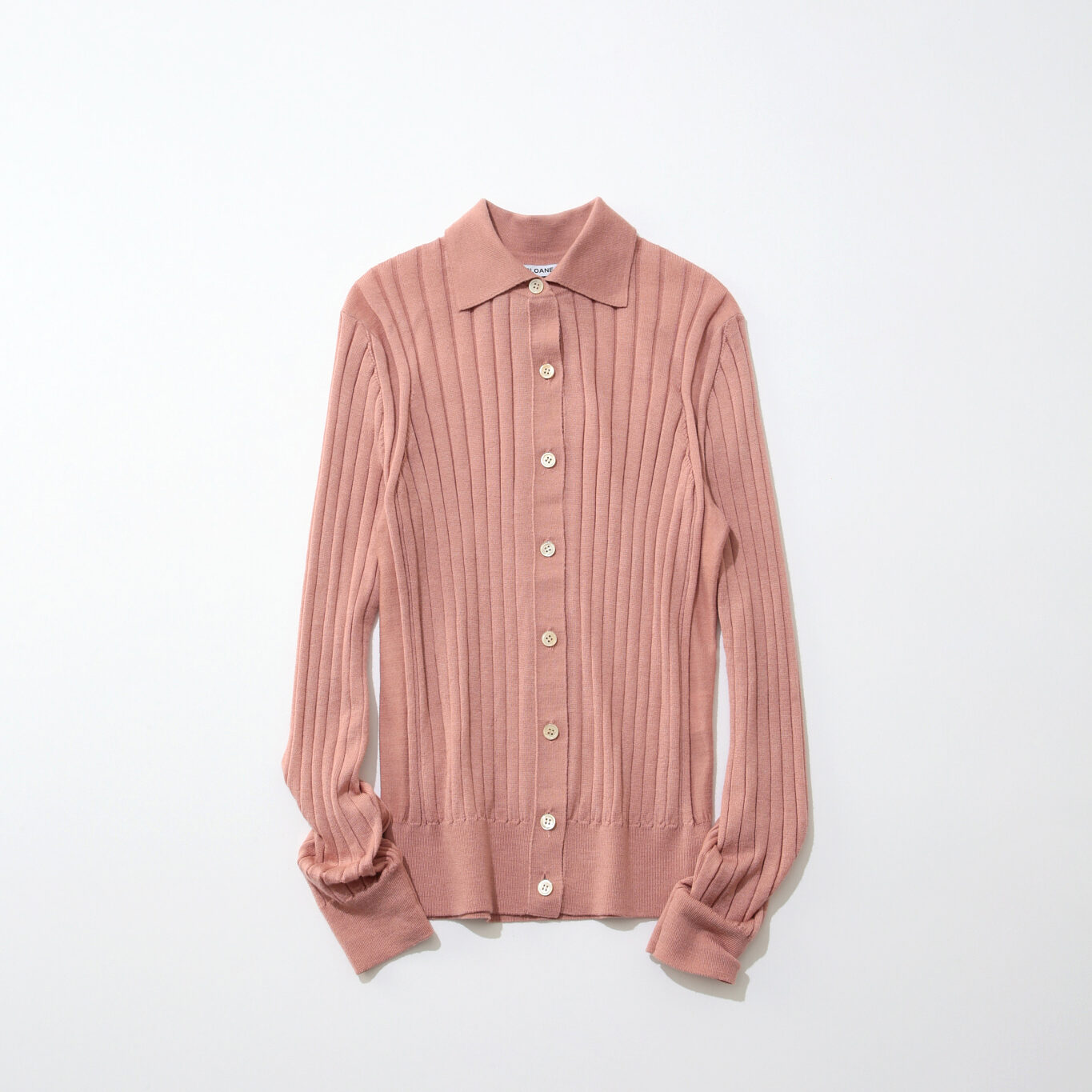 薄くて柔らかい着心地で、チクチク感を感じない快適な素材。ワイドリブなので身体のラインを拾いにくく、すっきり見せることに定評があるため、毎年人気のシリーズ。淡いピンク色なので、秋だけでなく春にも着映える1着です。¥リブポロニットカーディガン¥38,500(スローン/ザショップ スローン 新静岡セノバ店)