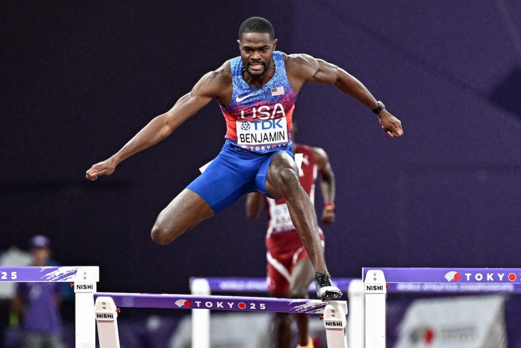 ライ・ベンジャミン選手(アメリカ)は、男子400mハードルで46.52秒を記録し、オリンピックの栄冠につづく金メダルを獲得しました。