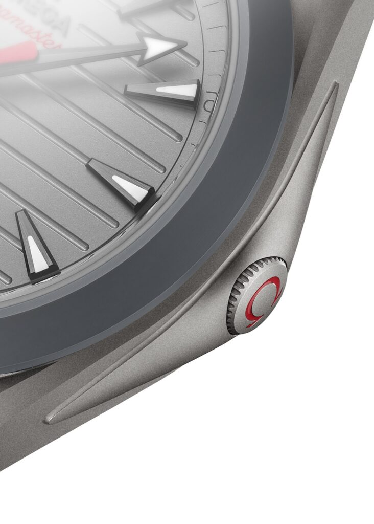 この “ウルトラライト”の重量はわずか55g。ケース、ケースバック、そしてリュウズは、ガンマチタンと呼ばれる合金からできており、これは従来のチタンよりも軽くて丈夫という優れた特性があります。また、入念な研究とトライアルを重ねた結果、ダイアルの減量化も実現。よって外見のデザインを損なうことなく、さらなる軽量化を実現しています。また、使わない時にケースの内部に収めることができる伸縮自在のリュウズのおかげで、競技中にアスリートの手の動きを妨げることが一切なくなりました。