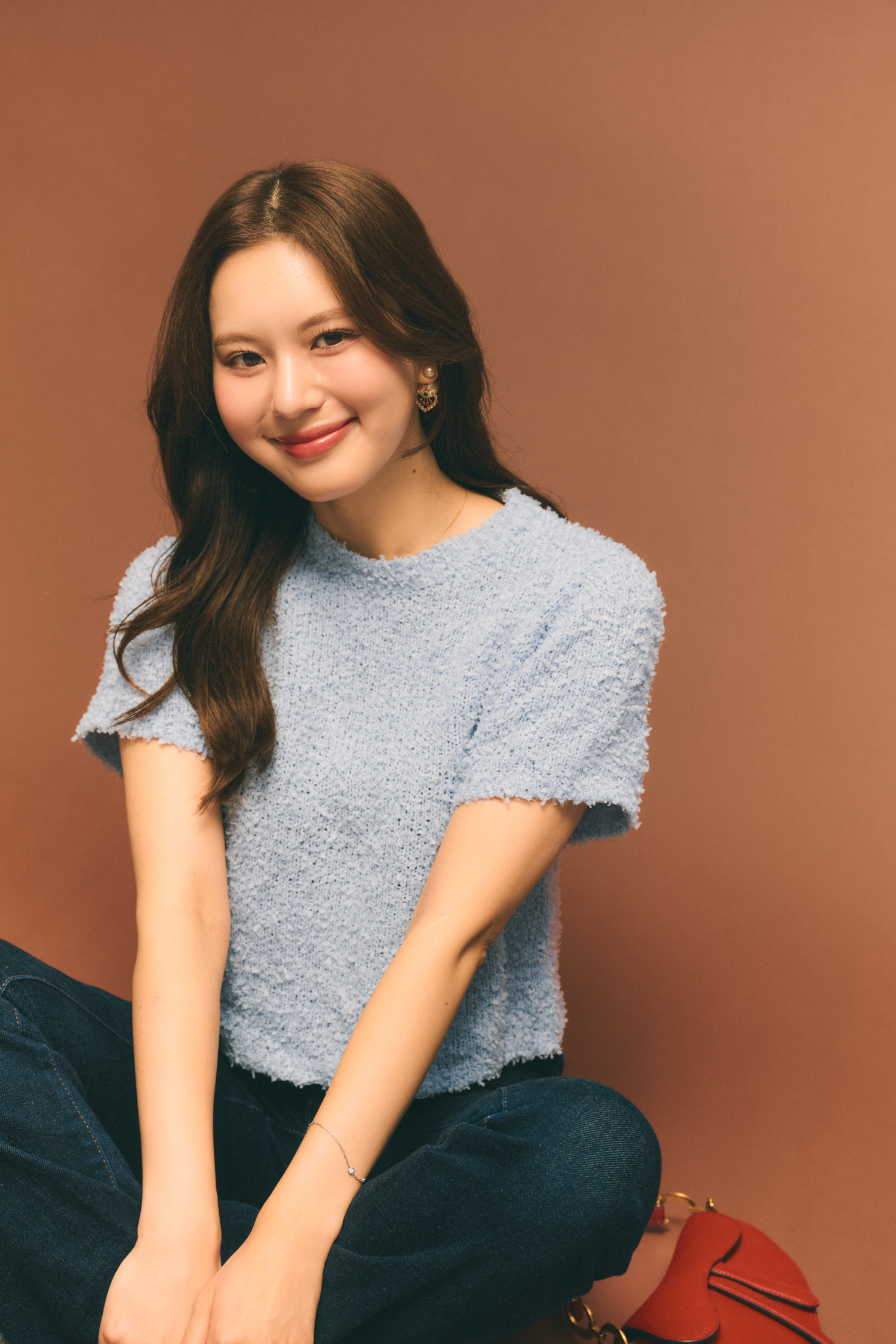 「ブルーパランの半袖ニットは独特の素材感が可愛くて、シンプルなデニムに合わせてもこなれて見えます。着心地も軽やかなので、季節の変わり目にちょうどよく、シーンを選ばず活躍してくれます。オフィスコーデの日はスカートやワイドパンツを合わせて着回しています」