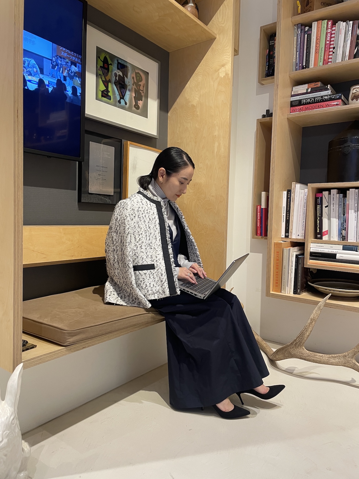 身につけるジュエリーと服とのバランスを調整しながら、コーディネートを組むようにしています。お客様にお会いする機会や外出の商談も多い為、きちんと感のあるアイテム選びやスタイリングを軸に、華やかさもさり気なく添えられるよう、気を配っています。