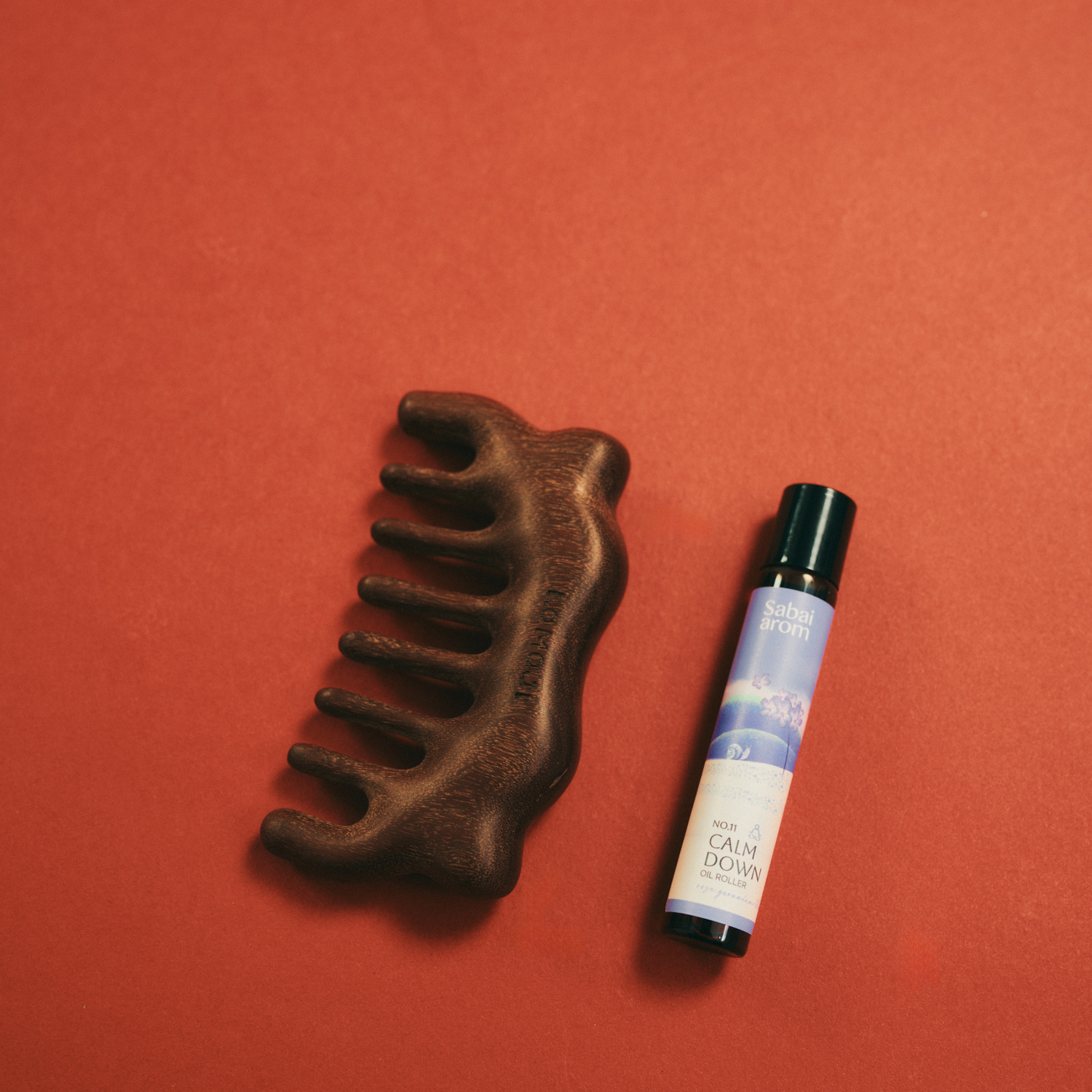 「機内は普段よりストレスがかかるので、リラックスアイテムは必ず持っていきます。アバイアロムのアロマオイルローラーはこめかみや首筋にコロコロするだけでふっと力が抜けます。ラベンダーやベルガモットなどのエッセンシャルオイルがブレンドされていて、快眠の助けになってくれる心強い存在です。木製カッサは頭が重いときや、ちょっとリフレッシュしたいときに使っています。どちらも小さくて持ち運びやすいので、旅のお守りのように常にポーチに入れています」
