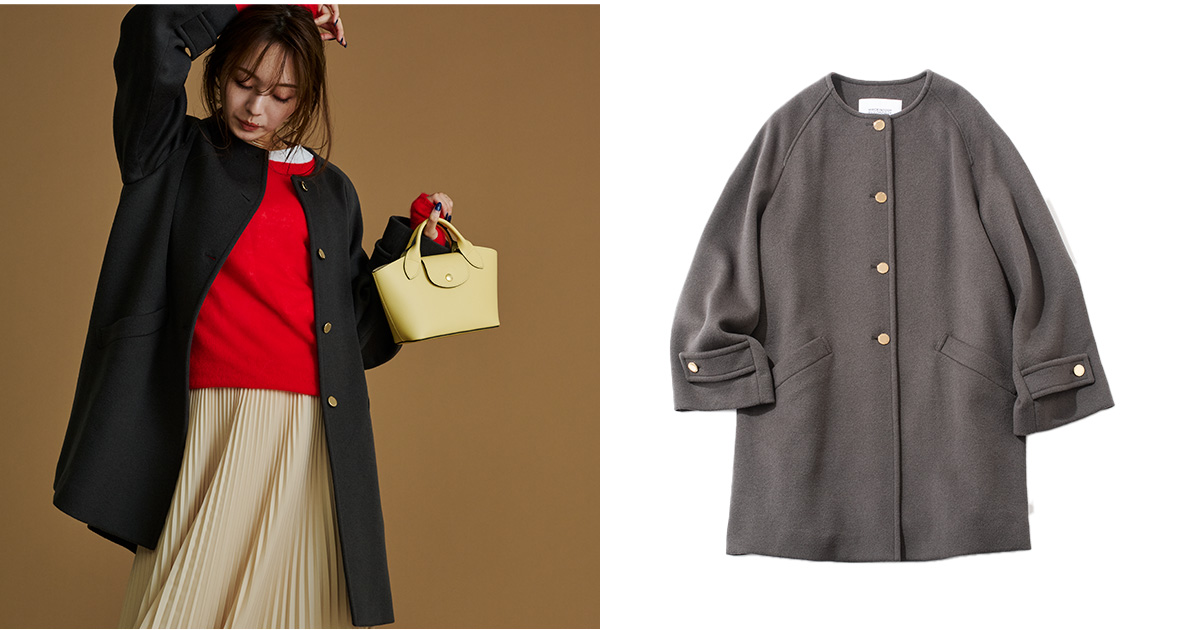 毎年人気のコートは冬本番には完売してしまうもの。変わらず売れ続ける定番シルエットは、やっぱり信頼できるブランドで選びたい!今回は、シーンレスで活躍し、オンもオフも品よく仕上がる「ノーカラーコート」をご紹介します!
