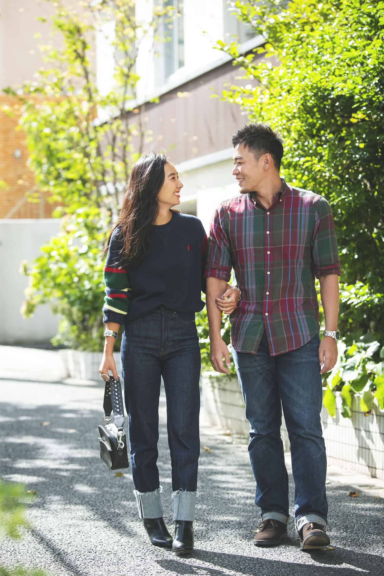 <鈴木さん>Knit:Ralph Lauren Denim:H&M Bag:J&M Davidoson Shoes:united arrows <彼>Shirt&Denim:Ralph Lauren Shoes:Clarks