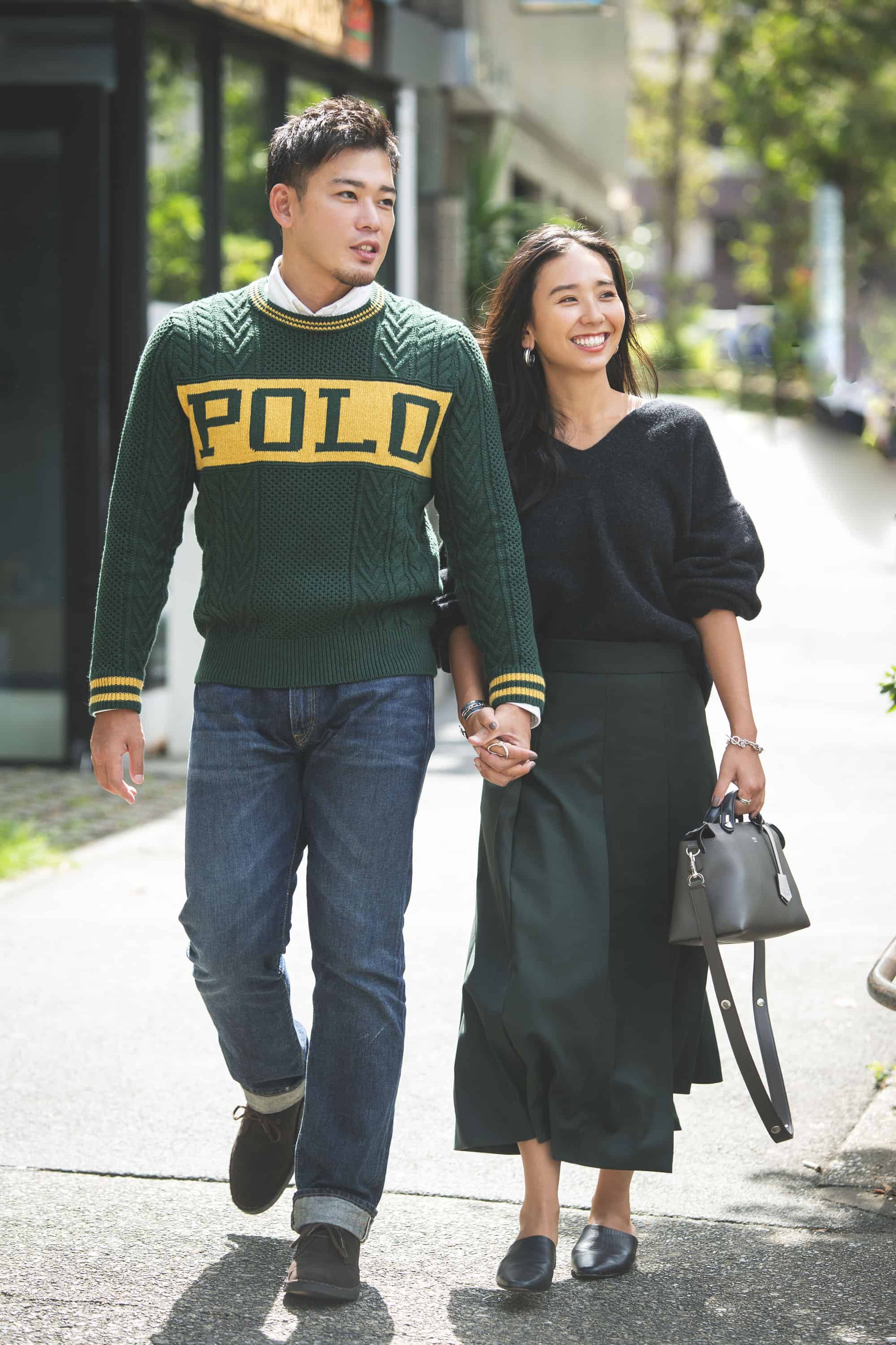 <鈴木さん>Knit:plage Skirt:DAME FRANK Bag:FENDI Shoes:BANANA REPUBLIC <彼>Knit&Shirt&Denim:Ralph Lauren Shoes:Clarks