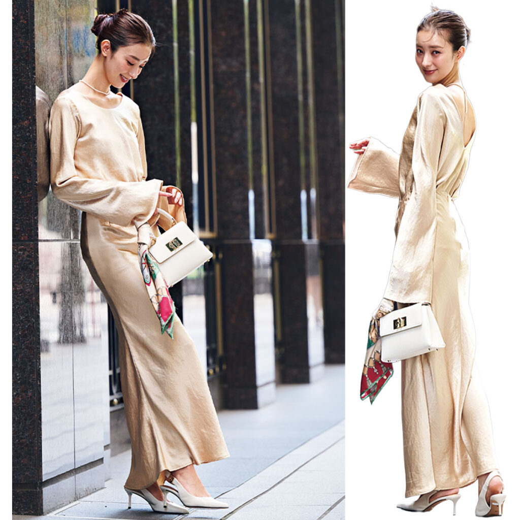 ※CLASSY.2025年10月号「“浮かない”のにちゃんと洒落てる、今っぽお呼ばれゲスト服」より。