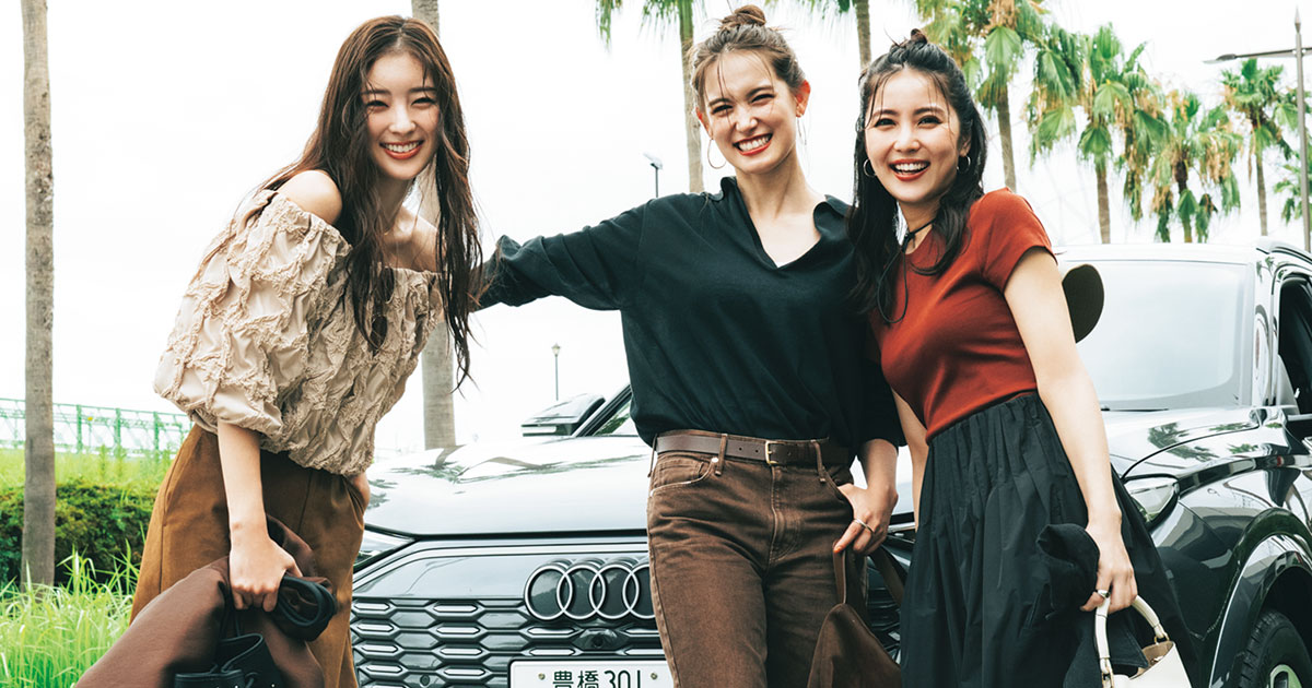 撮影/田形千紘 モデル/トラウデン直美、石川 恋、宮本茉由 ヘアメイク/沼田真実〈トラウデン直美、宮本茉由分〉、kanako〈石川 恋分〉 スタイリング/近藤和貴子 構成・取材/佐藤彩花 編集/陣内素実 取材協力/Audi、千秋工房 再構成/Bravoworks,Inc.