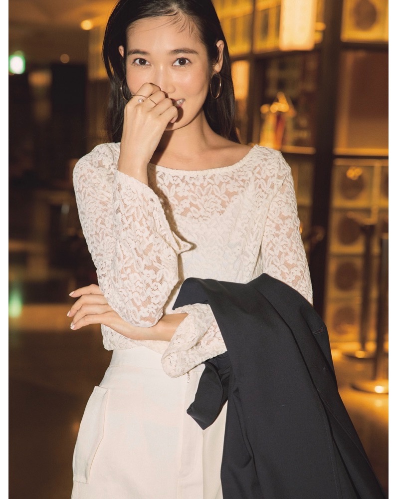 10月17日(金)、程よく素肌が透けるレーストップスは、着るだけで華やかさとオシャレ感を引き上げてくれる万能アイテム。白スカートを合わせたワントーンコーデでも、素材のコントラストでのっぺりせず上品に仕上がります。昼間はジャケットを羽織ってきちんと感を、華金の夜は1枚でフェミニンに。甘さを抑えた大人の“白レース”スタイルで、オンもオフも抜かりなく。
