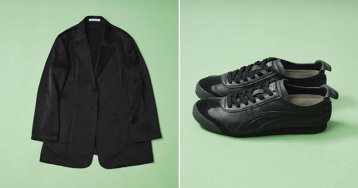 大好きな真っ黒スニーカー。最近仲間入りした「メキシコ」はレザーの上品さがお気に入り。土踏まずにクッションがフィットして、ふっかふか。足と一体化するとはこのこと…?と思うような履き心地です。