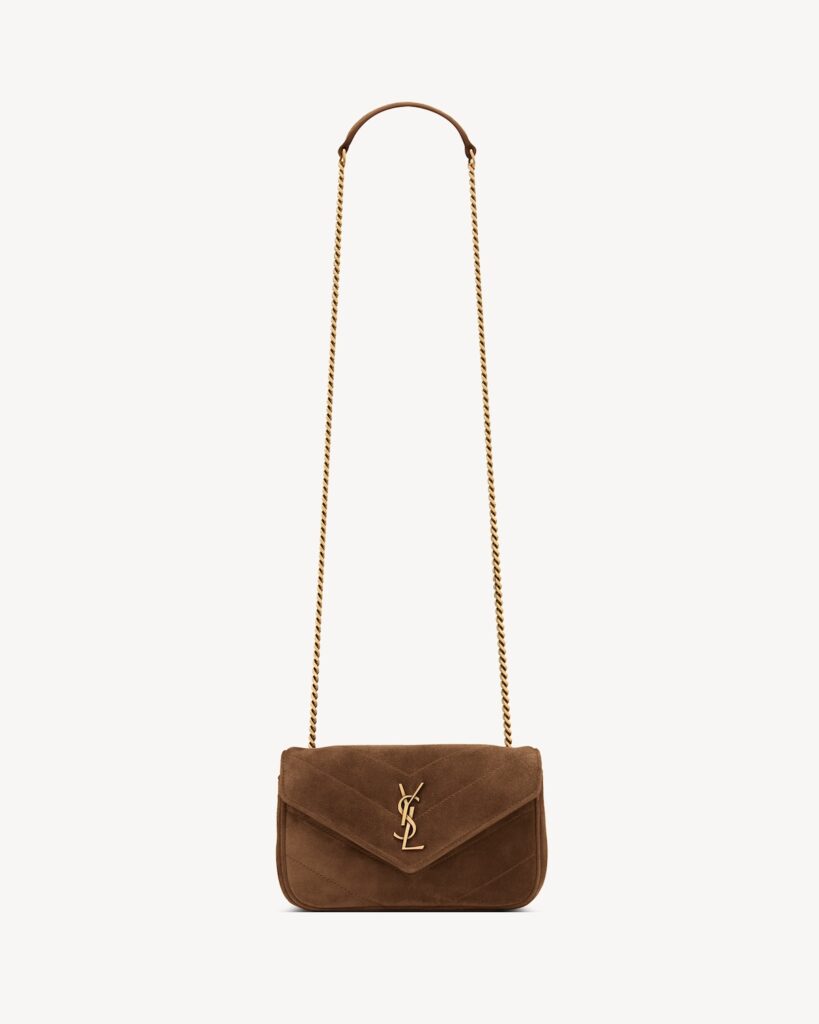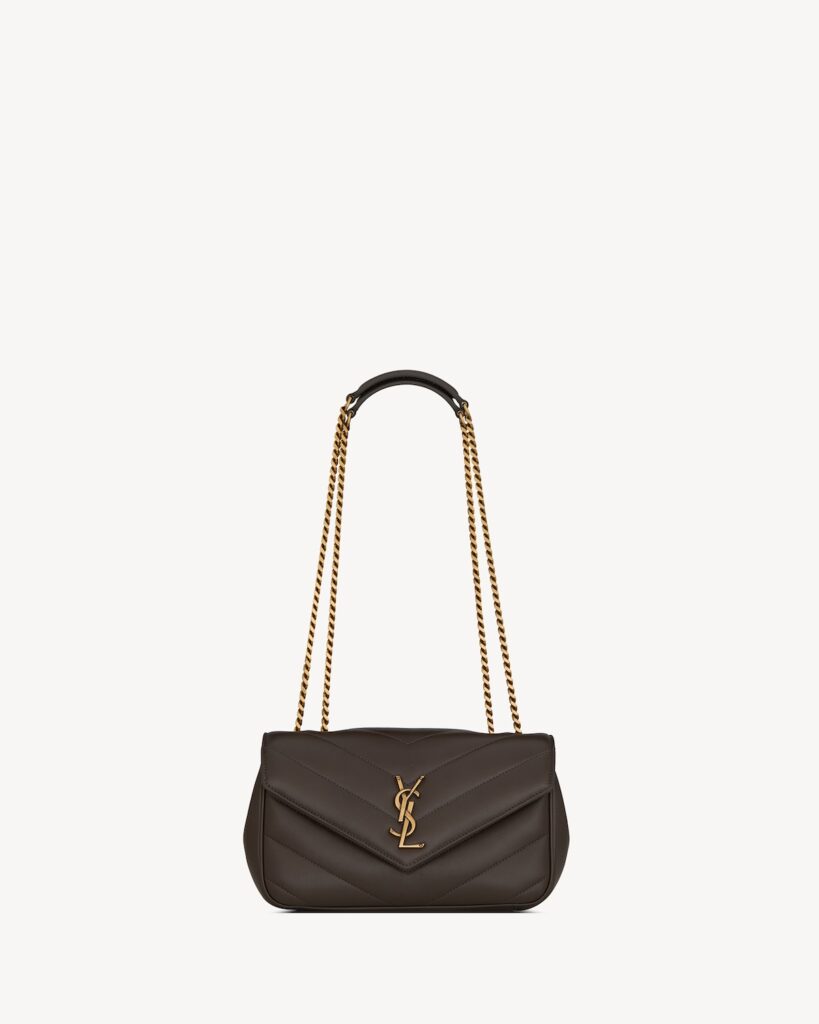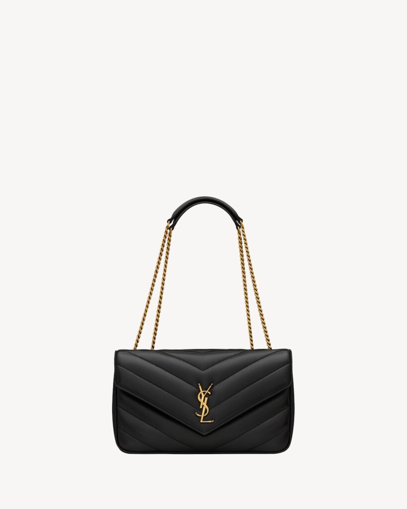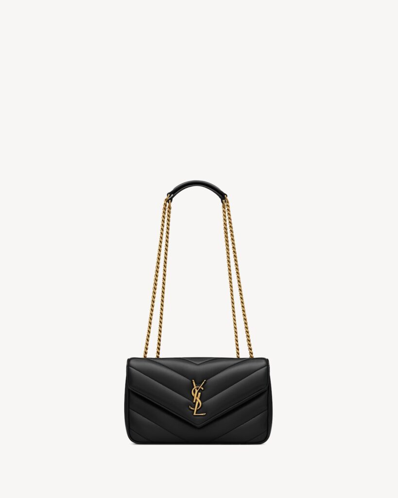 艶感のあるラムスキンに施されたシェヴロンキルティングに、“YSL”のカサンドラロゴ、クロスボディやショルダーとしても活躍する2WAYのチェーンストラップが付いた「ルル」。ミニ、スモール、ミディアム、ラージの4サイズ、またブラックからペールトーンまで幅広いカラーを展開しています。
