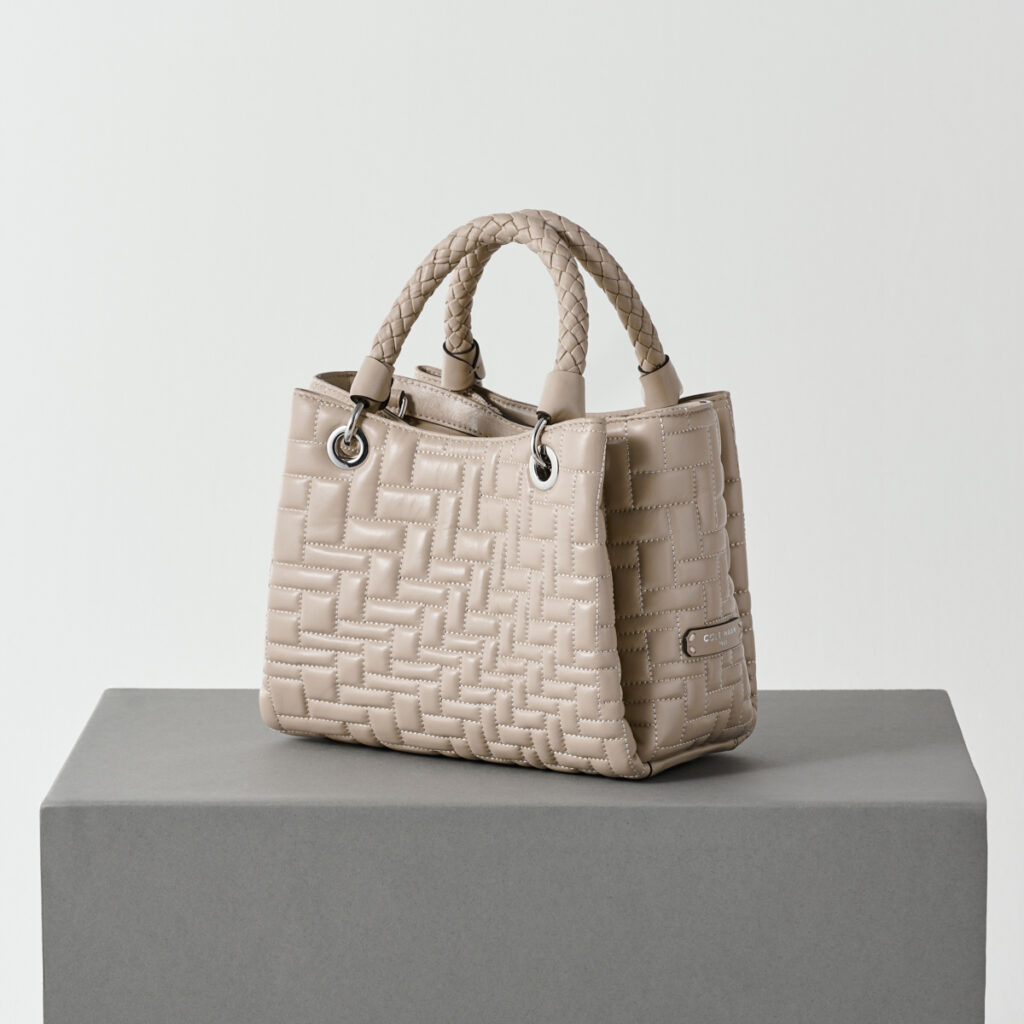 軽さとデザイン性を兼ね備えた、コール ハーンの「カティア スモールトート クロスボディ」日本限定モデル。重さはわずか498gとペットボトルより軽く、通勤で持ちやすいのが魅力。柔らかな羊革が上品で、いつものコーディネートをぐっと格上げしてくれます。外側にはスマホやパスケースを収納できるスリップポケットがあり、取り出しやすさも抜群。さらに付属のストラップを調整すれば、ショルダーにもなる2WAY仕様。シルバーの金具と控えめなサイドロゴで、オフィスシーンにマッチします。