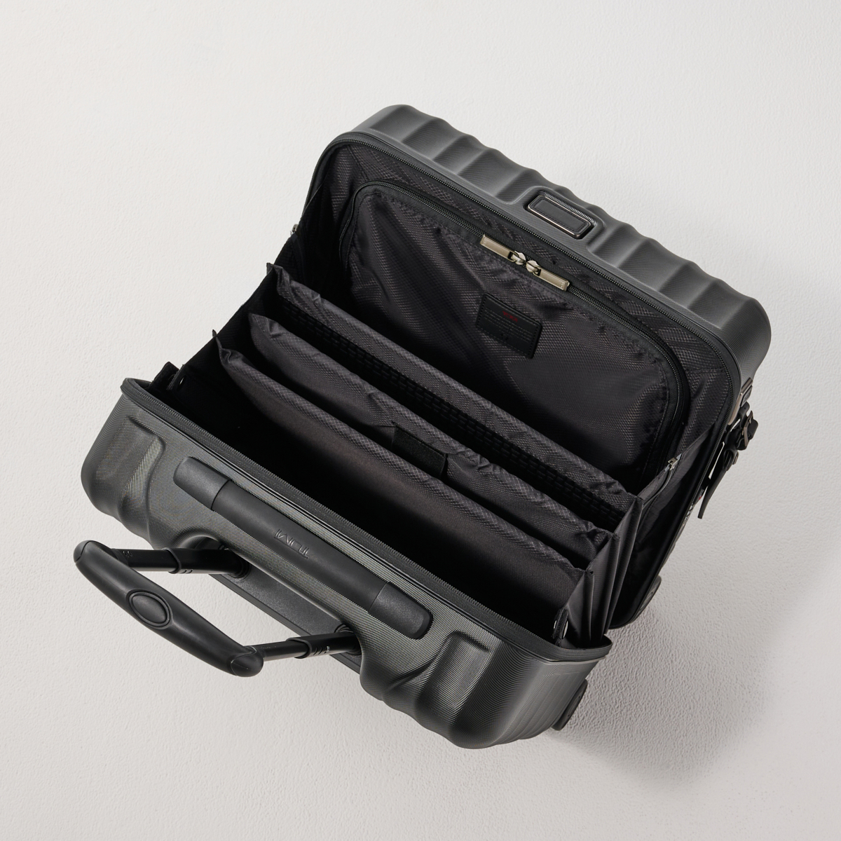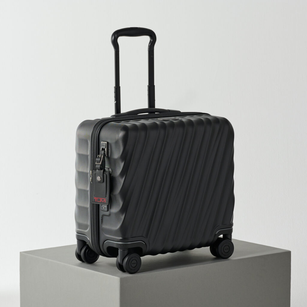 トゥミの「19 Degree コンパクト・キャリーオン」は、立体的なラインが入ったモダンなデザインで、都会的なスタイリングに似合う一品。表面にはマット加工が施されており、傷がつきにくく目立ちにくいのも魅力です。取り外し可能なPC用ポケットと書類用ディバイダーを付属しているので、出張時に荷物を整理できるのも便利。コンパクトながら収納力もあり、機内持ち込みにも対応。短期出張だけでなく週末トリップにもピッタリです。