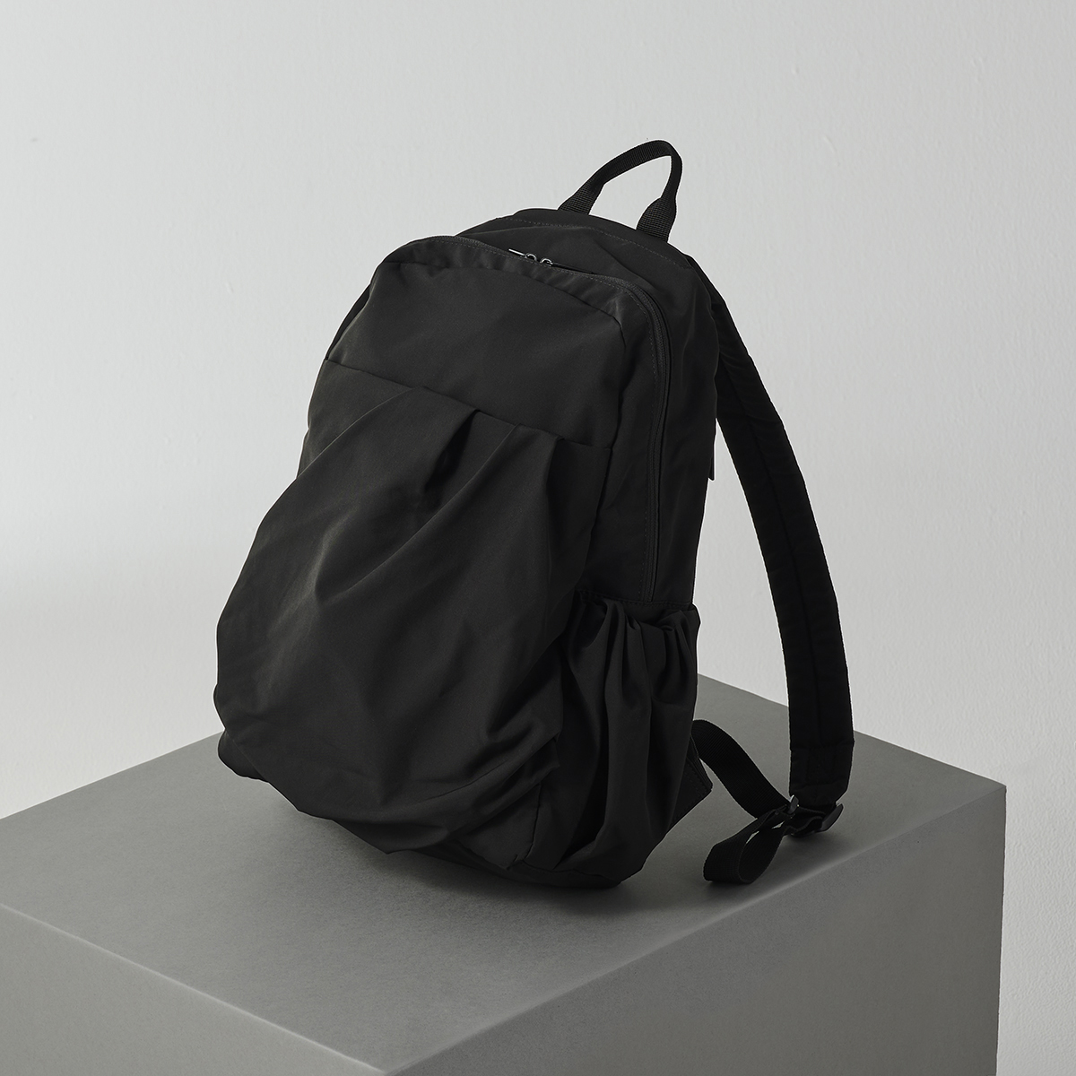 シンプルでどんなスタイルにも合わせやすいエミのリュックは、毎シーズン高い人気を誇る名品。軽くて丈夫なうえ、フロントのギャザーディテールがトレンド感をプラス。リサイクルポリエステル素材を使っていて、環境にも配慮しています。ポケットは全部で5つと収納力も抜群。上部にはカラビナ付きポケットがあって鍵の収納に便利。背面にはクッション入りのPCポケットも。さらに背面ファスナーから本体内部に直接アクセスできるので、ペットボトルやタンブラーも楽々取り出せます。撥水加工つきだから雨の日も安心。定番のブラックをはじめ、カラー展開も豊富なので、お気に入りの一色が見つかるはず。