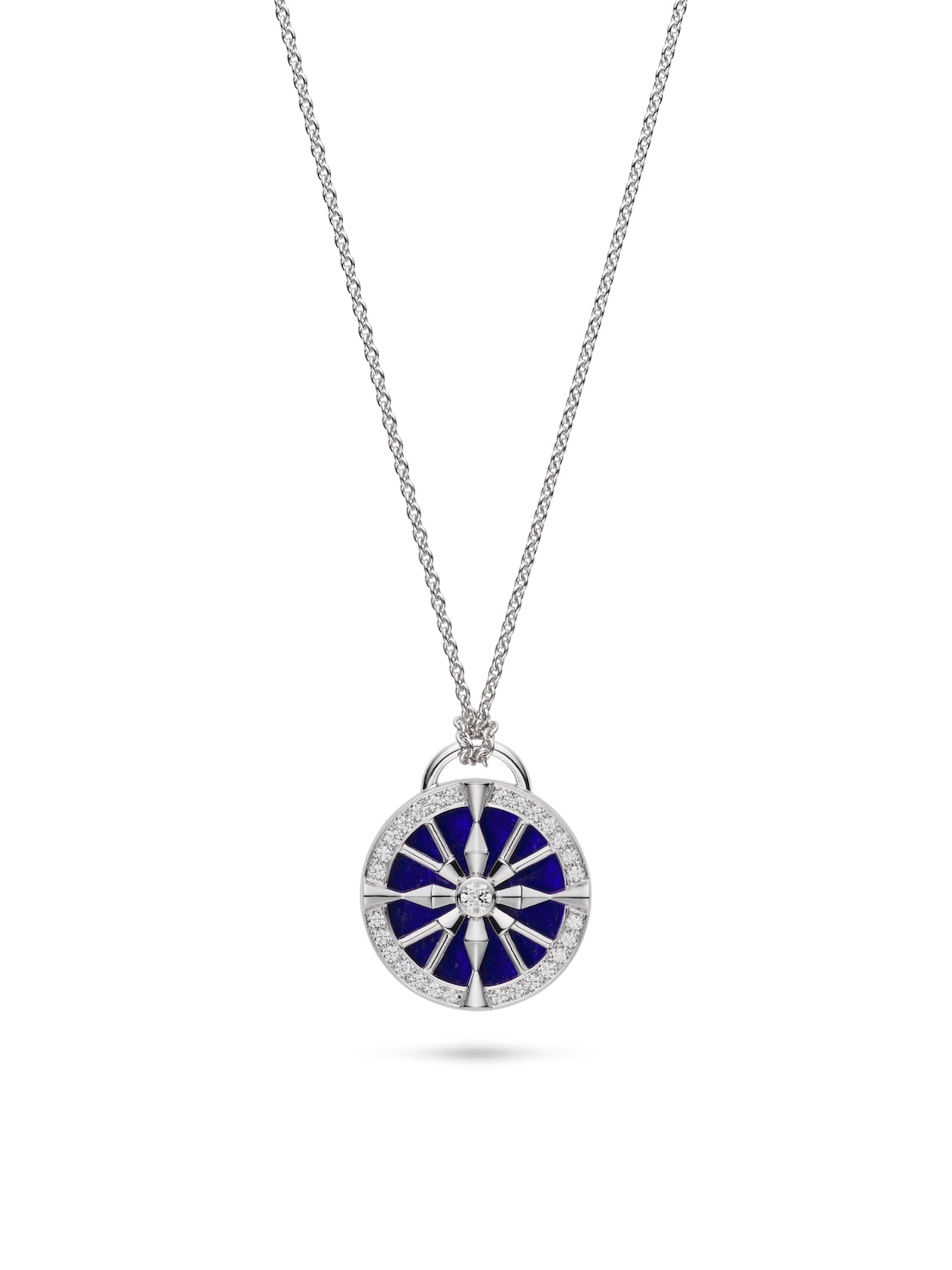「ラッキー アローズ」は、幸運を射止める矢のモチーフを放射状にあしらった、“メダリオン”が着想源のジュエリー。そのアイコニックなデザインは、ミキモトのマスターピースである「矢車」からもインスパイアされています。未来を照らすお守りのような存在として日常を華やかに彩るこの人気コレクションに、今回、ラピスラズリを主役にしたペンダントが新しく仲間入りしました。