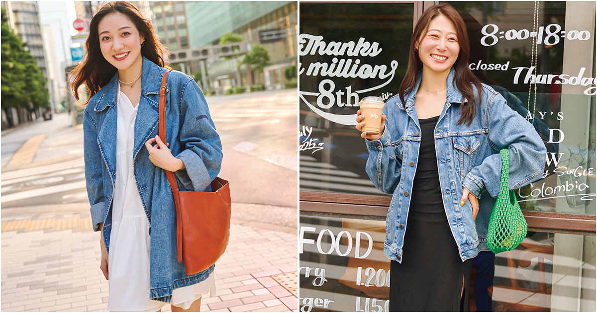 フリーランスに転身してから友達と夜カフェに集まって一緒に仕事をすることも。ヴィンテージのデニムジャケットは一枚羽織るだけで秋らしさをプラスしてくれるのでお気に入りです。同じく秋らしさのあるイル ビゾンテのバッグはPCも入ってONOFFで活用中。