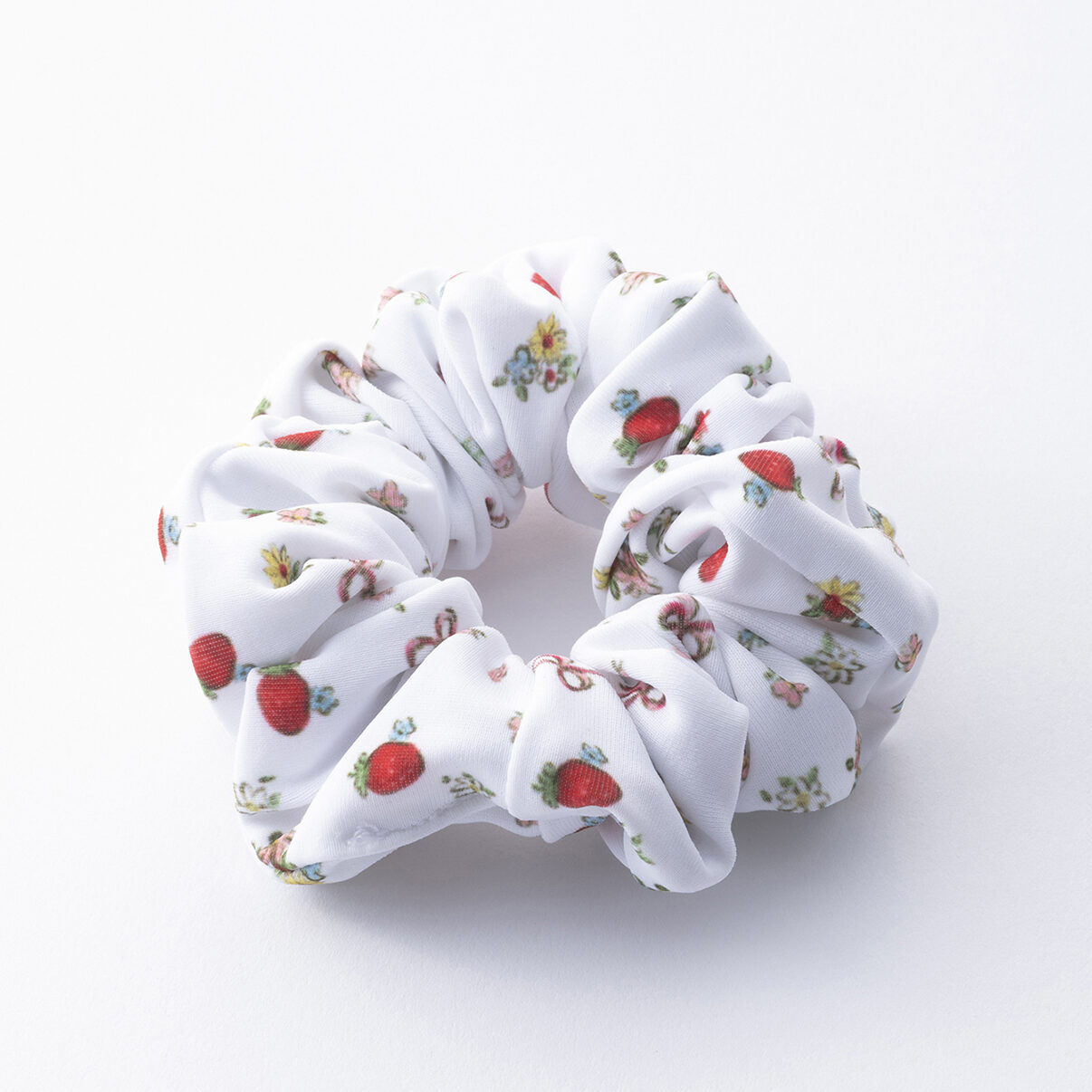 トレンド最先端のデザインが揃い、SNSで人気の「GLOWNY(グローニー)」。レトロで乙女心をくすぐるイチゴ、小花、リボンモチーフのシュシュは、パジャマライクな可愛らしさもツボ♡シュシュ¥3,740(GLOWNY/NUBIAN)