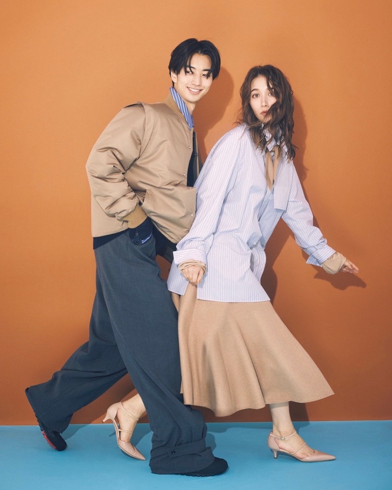 10月29日(水)、彼とシェアできそうな、ベージュ×ブルーのオーバーサイズシャツが主役。中にベージュのタイ付きニットを合わせて、重ね着風に見せるレイヤードが新鮮です。シャツはあえてINせずOUTでゆるく着ることで、ほどよい抜け感が生まれます。立体的なフレアスカートと華奢なストラップシューズで、女性らしさをさりげなくアップ。メンズライクなアイテムも、配色とシルエットで優しく仕上げた、大人のリラックススタイルです。