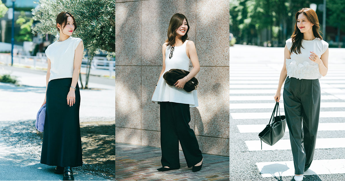 胸下から広がる立体シルエットで黒ワイドパンツコーデの鮮度UP!